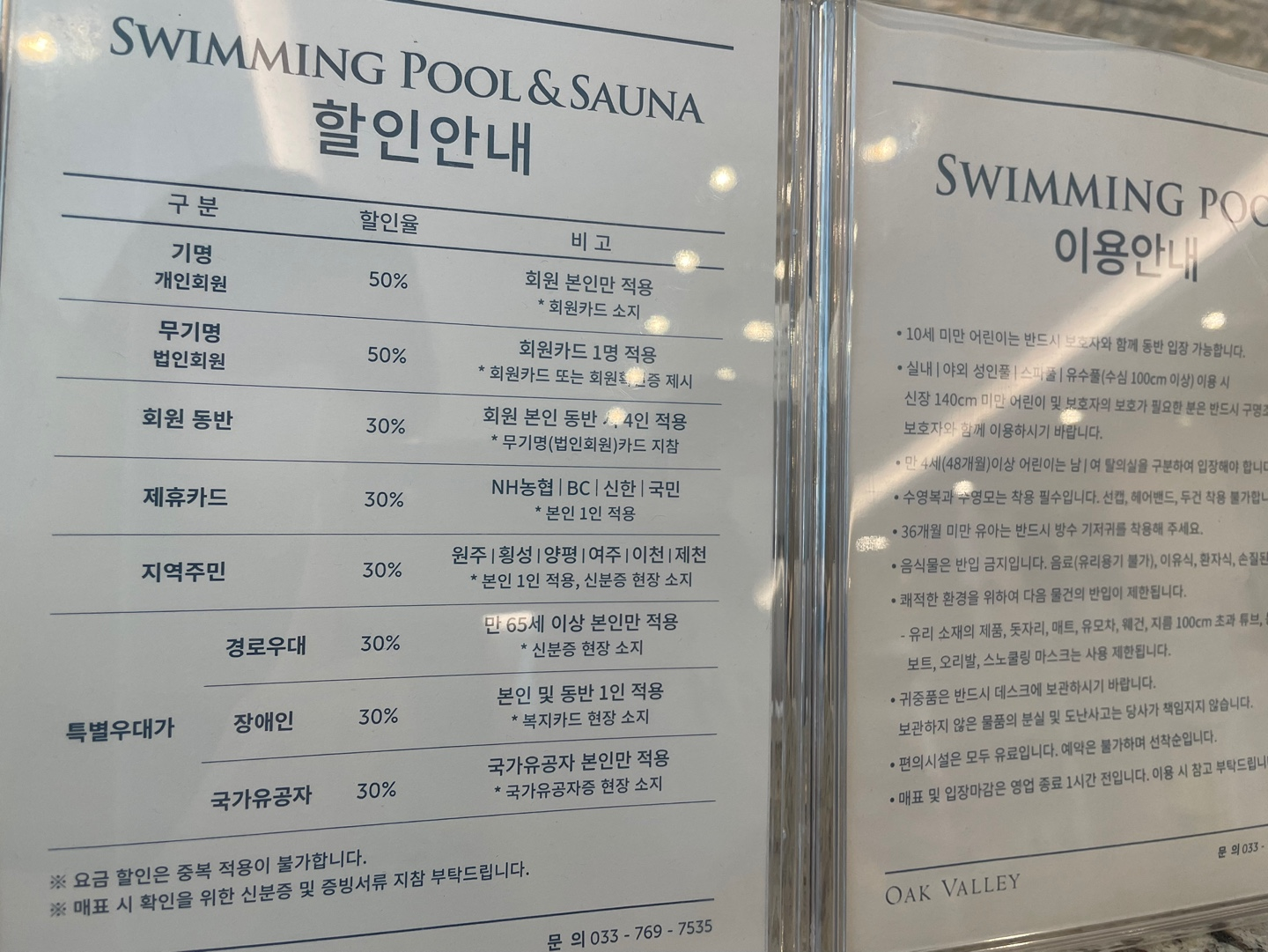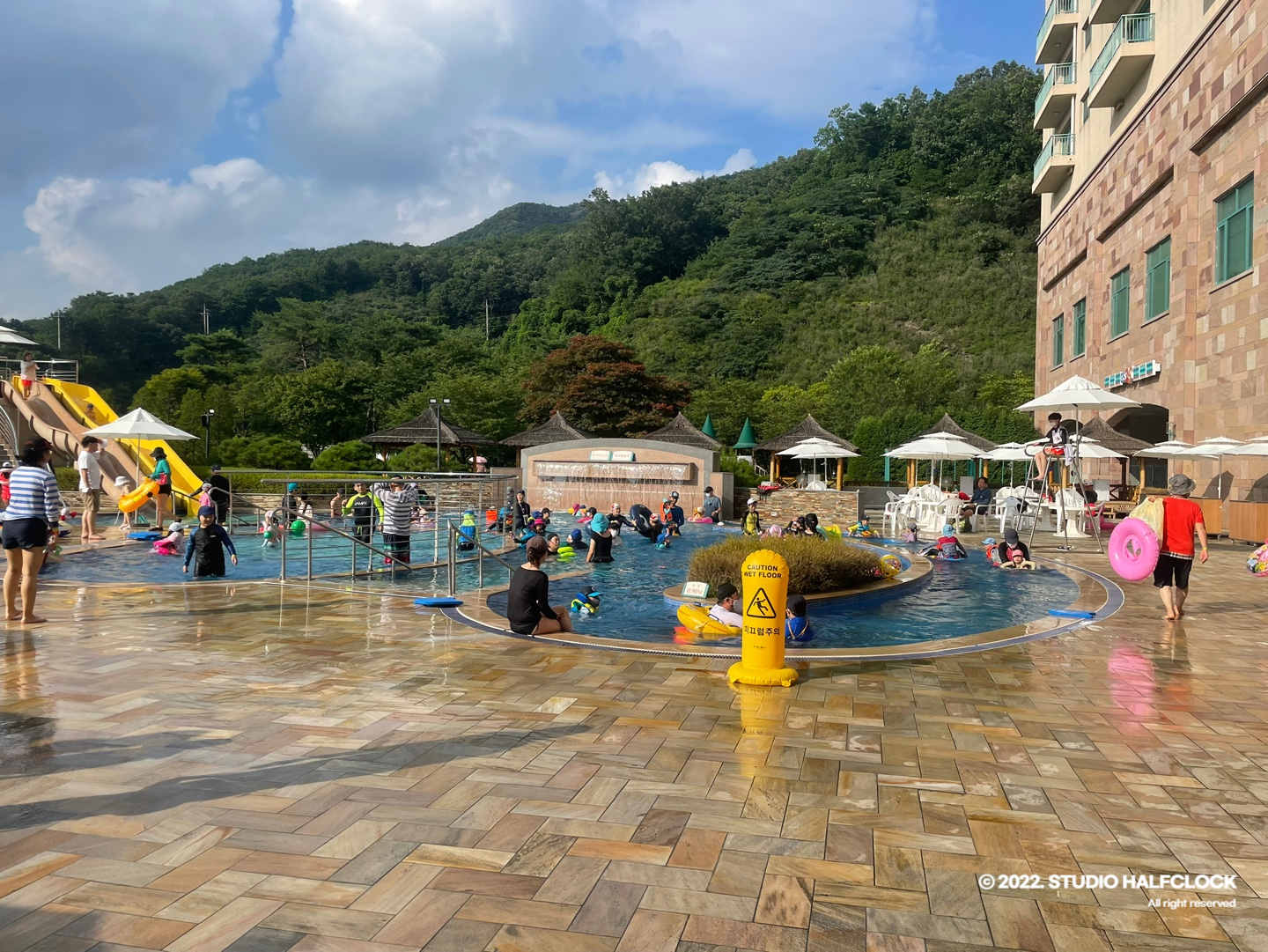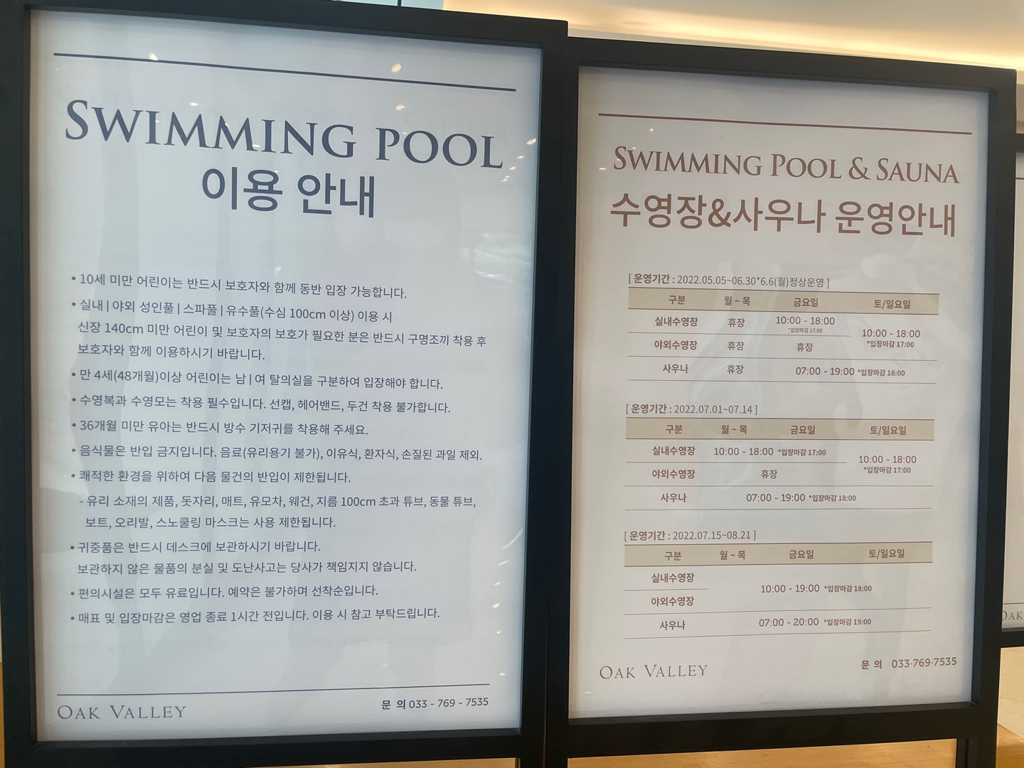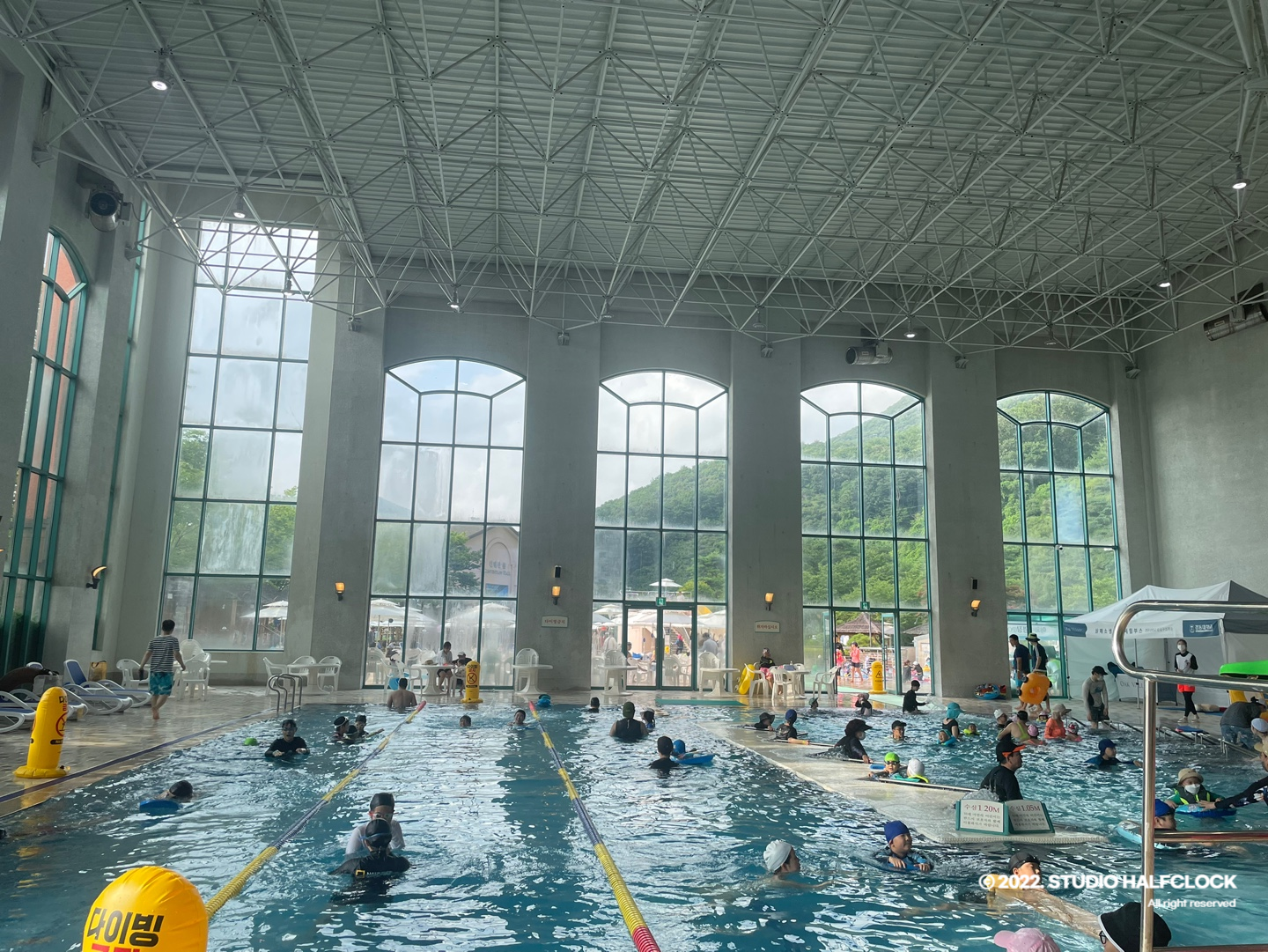 오크밸리의 수영장은 스키빌리지 1층에 있다.