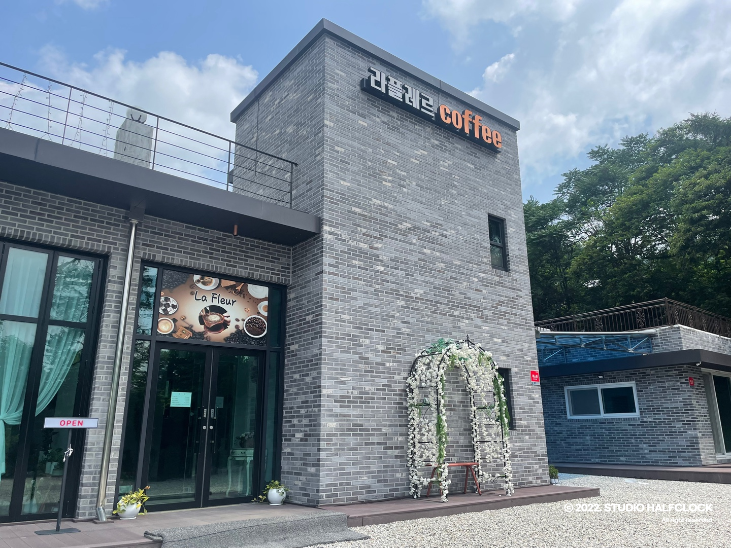 단독으로 있는 카페, 완전 최근에 건축한 듯하다.