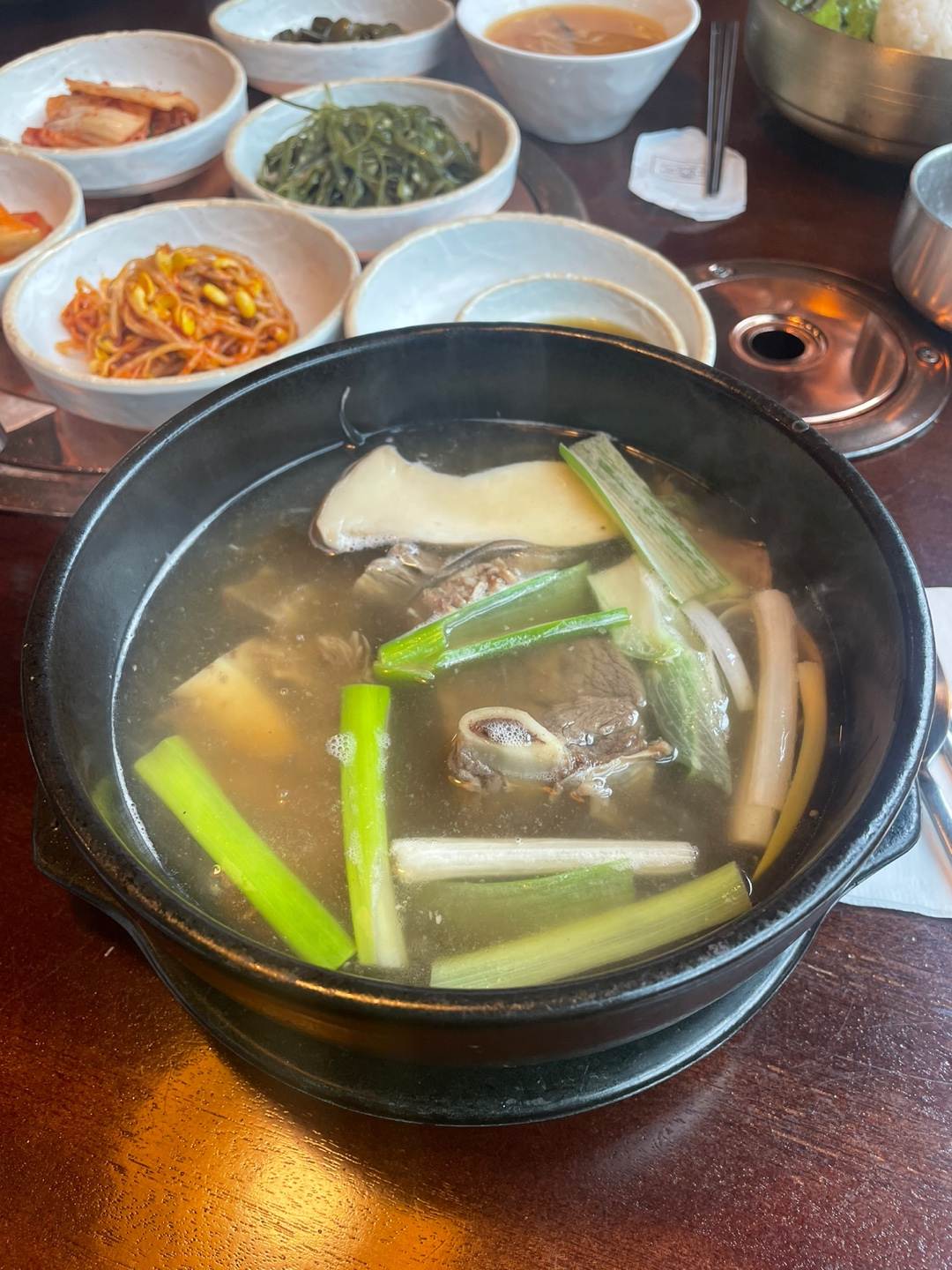 단품 식사로 궁중 능이 한우탕(13,000₩)을 먹었다.