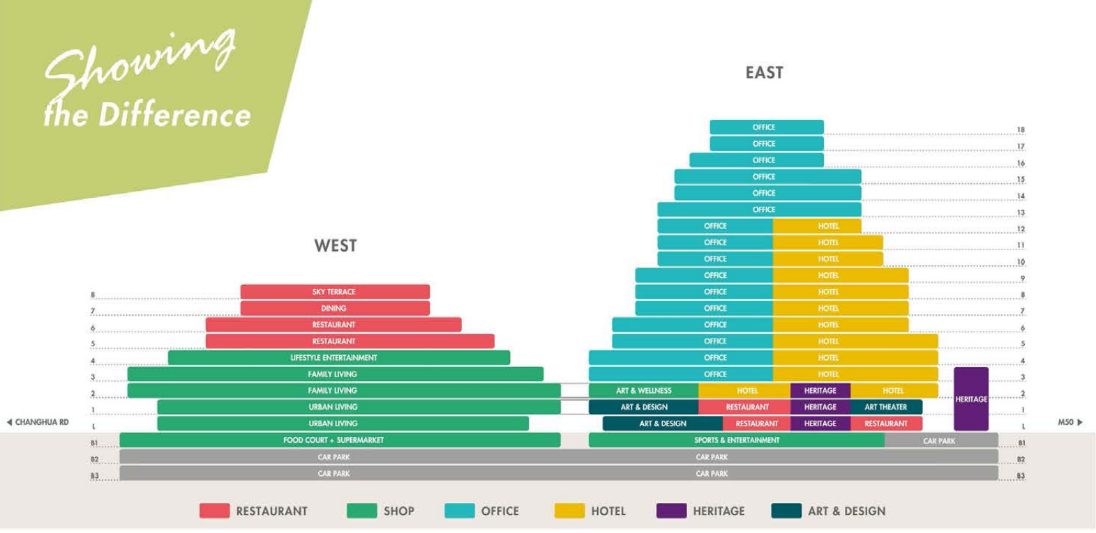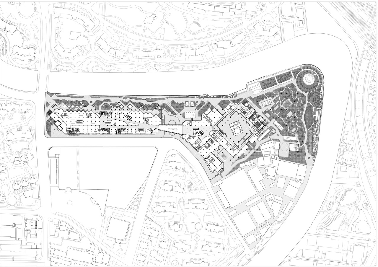 역사적으로 상하이는 예술, 라이프스타일, 패션, 엔터테인먼트, 비즈니스 분야에서 앞선 중국의 최첨단 도시 중 하나다. 상하이의 북서부에 위치한 부지는 상하이의 M50예술단지, 쑤저우허(Suzhou Creek)와 공원을 인접한 특수한 위치성과 거기에 어우러지는 큰 규모의 다용도 단지를 설계해야 했다. 주변에 작은 건물들과 잘 어우러지면서 리테일, 식당가, 엔터테인먼트, 거주 등 다양한 시설들을 한 곳에 모은 거대한 건물이어야 했다.