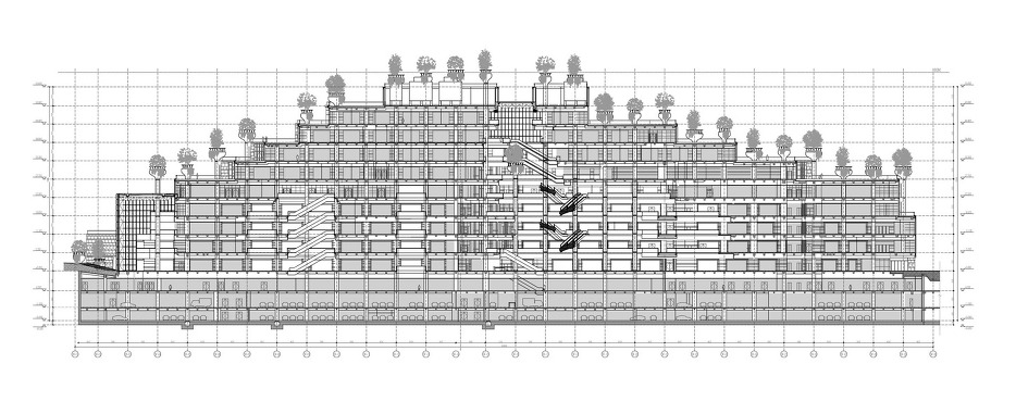 여기서도 구조 기둥을 이용하여 디자인을 했는데, 대부분의 일반적인 건물들은 구조물 안에 기둥들을 숨겨놓는다. 하지만 해더윅은 이 구조물을 밖으로 끌어냈고, 이 기둥들을 위로 끌어올려 거대한 화분을 만들었다. 이 기둥들의 꼭대기를 넓은 화분으로 이용하여 자연을 끌어드렸고 이 식물들은 1년에 21톤의 이산화탄소를 흡수할 수 있고, 건물 기둥에 급수관과 우수관 외에 비와 토양의 수분을 감지할 수 있는 센서가 설치되어 토양의 습도에 따라 자동 급수가 가능하다.