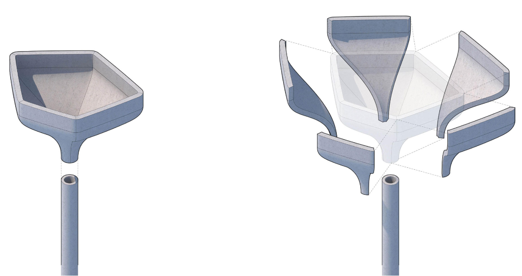 Cast-in-place 콘크리트 슬래브는 모든 precast요소들을 연결한다. 말뚝의 윗부분은 흙으로 채워진 6m 너비의 용기를 형성하는 조립식 "꽃잎"으로 만들어졌다. 엔지니어링 회사 Arup은 3D Parametric 스크립트를 이용하여 공원의 포트 구조를 위한 기하학적 구조를 개발했다.