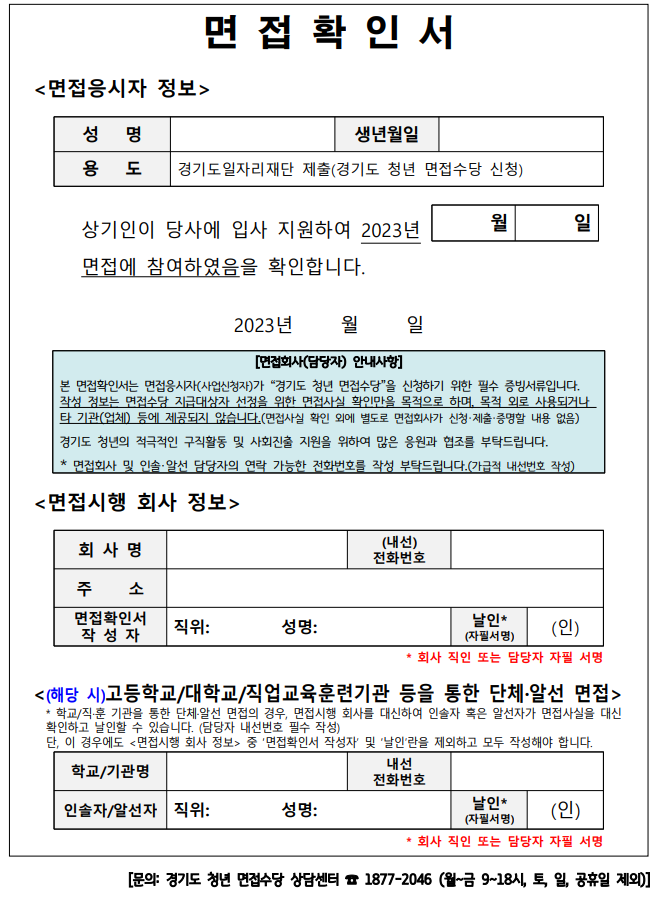 - 면접확인서는 '회사 담당자가 작성'하는 서류