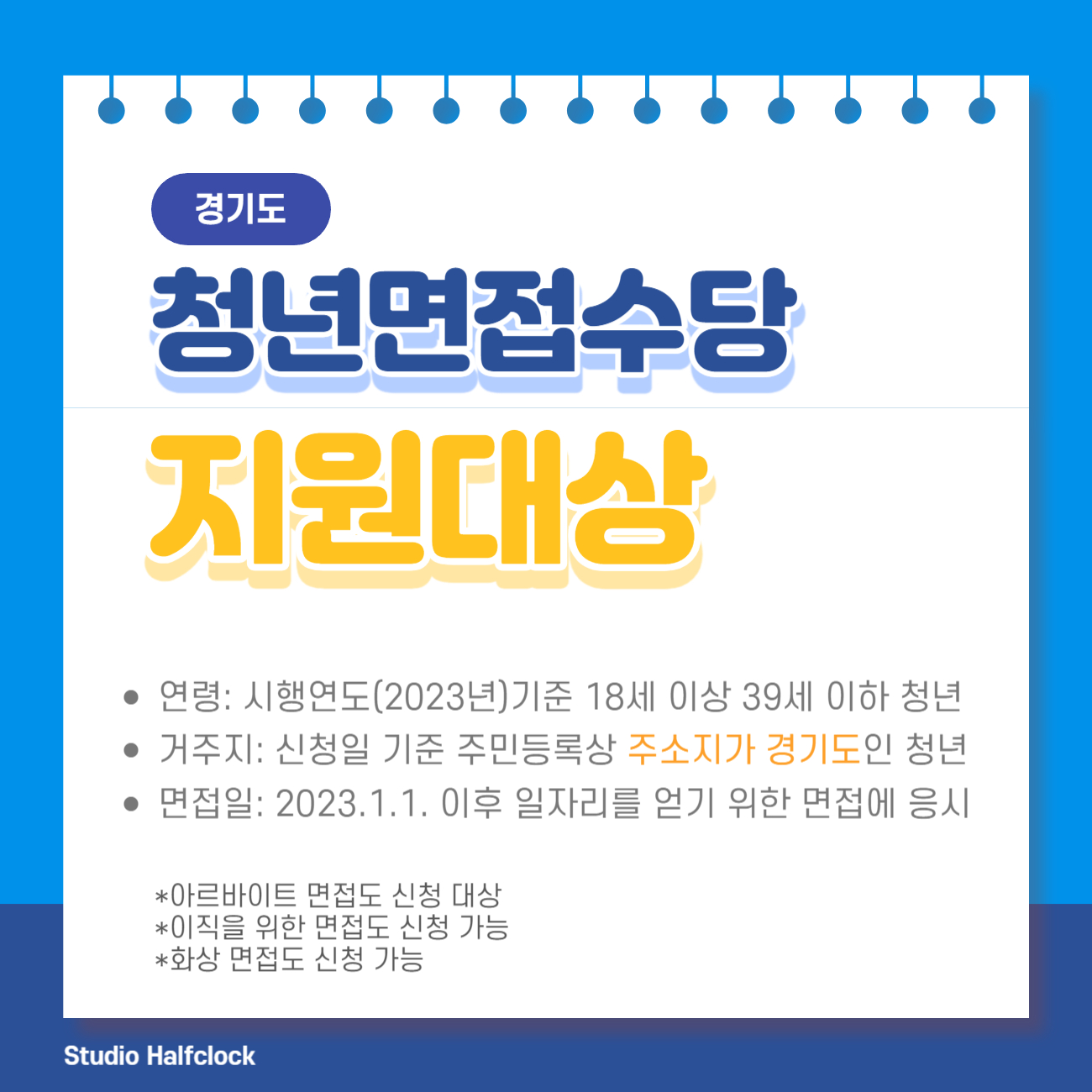 - 지원대상: 면접활동을 하는 경기도 내 18세 이상 39세 이하 청년