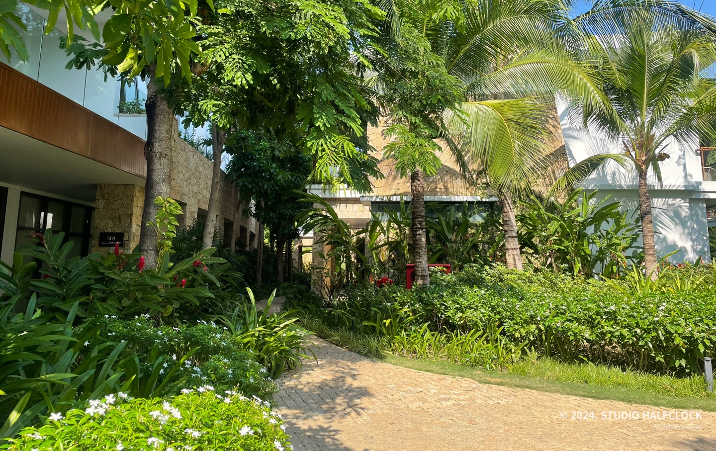 로비에서 룸으로 이동! 케리어 다 끌어주시는데 바닥이 좀 울퉁불퉁해서 조금 힘들어 보이셨음. 저희 방은 조금 안쪽에 위치해 있어서 로비에서 엘베 타고 1층으로 이동해서 왼쪽으로 쭉 들어갔습니다. 그 와중에 4월 나트랑 날씨 너무 좋았어요.. 나트랑여행 3~4월 추천!