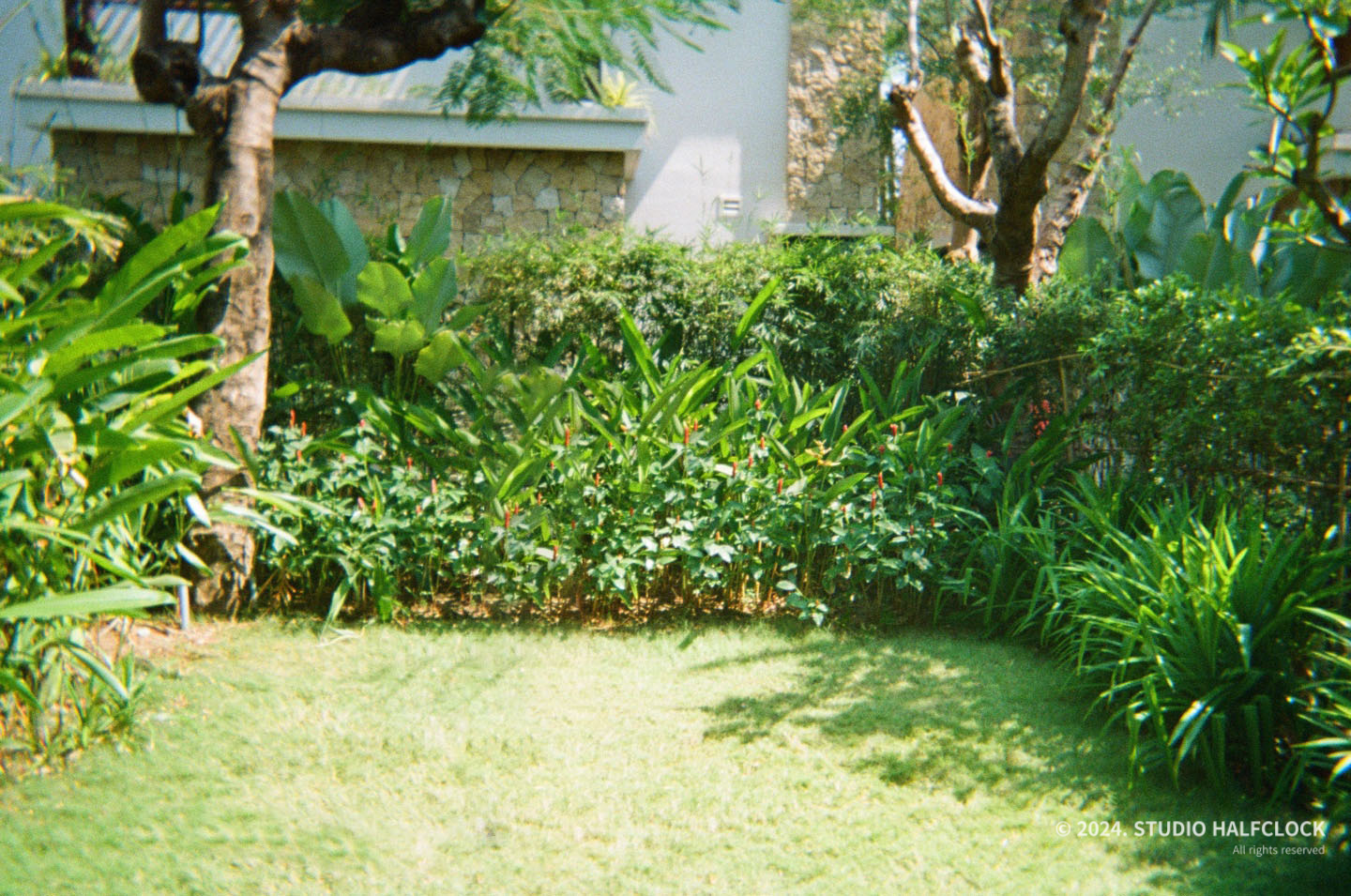 필카로 찍은 정원 너무 예쁘지 않나요. 작게 정원이 있는데 여기 앉아서 햇빛 쬐면 좋습니다. 근데 바로 옆에도 방이 있어서 소리가 좀 잘 들립니다. 여기 빨래 너는 것도 있어서 수영복 널어놓으면 금방 마릅니다.