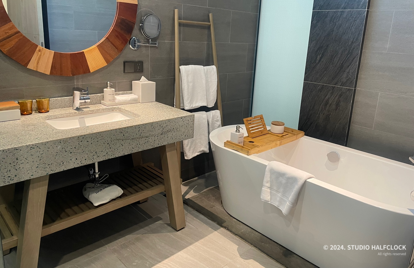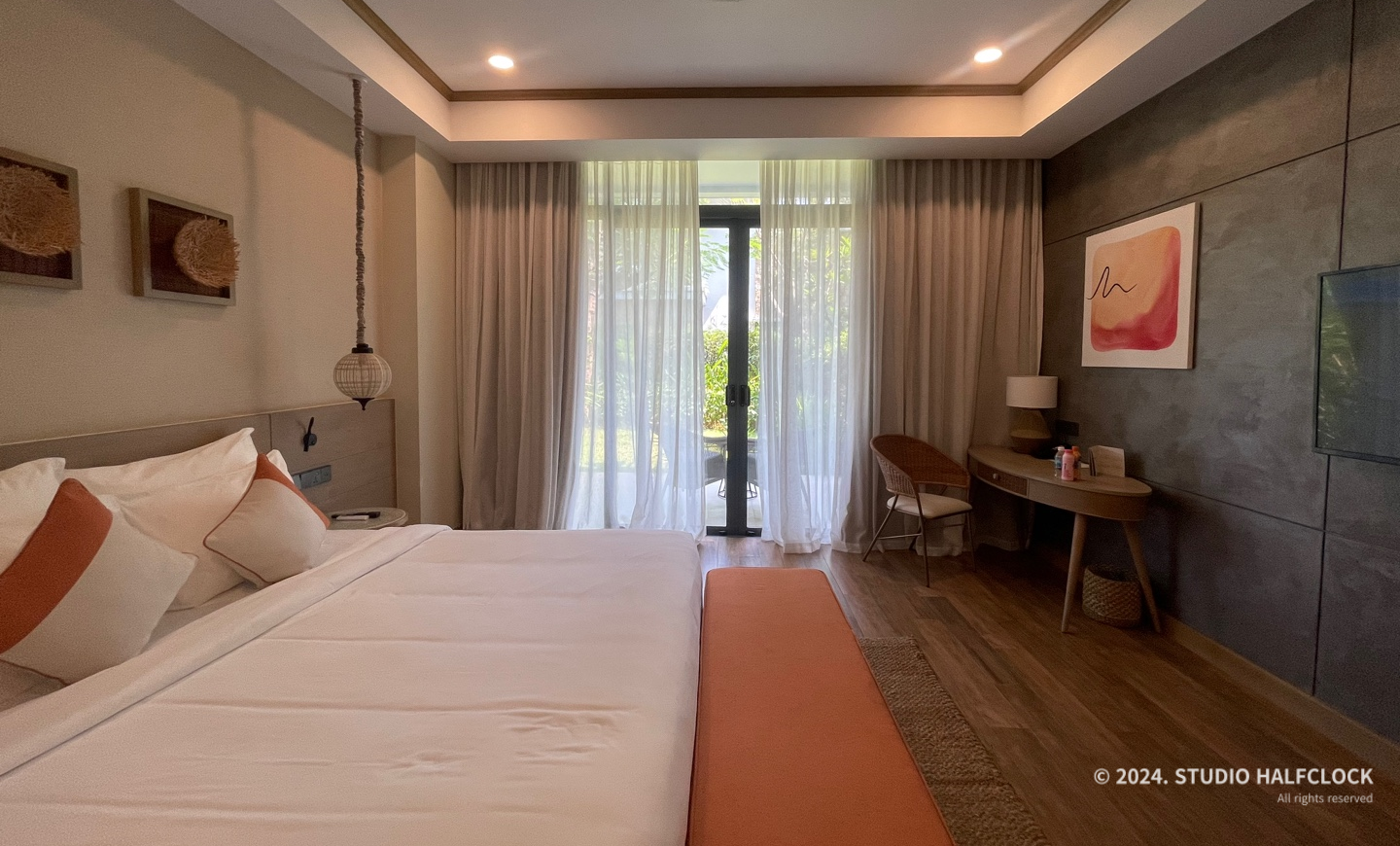 저는 어썸룸으로 1층에 가든이 있어서 바로 나갈 수 있는 방을 선택했어요. 방에서 정원으로 바로 나갈 수 있는 구조입니다. 흡연자가 가장 좋아하는 구조! 가격대가 5성급 리조트인데 저렴했어요. 미아리조트의 반값에 2일 투숙! 갓성비 아닙니까. 룸컨디션은 23년도에 오픈한 리조트라 그런지 다 깔끔했고 가구 상태도 말끔했습니다.