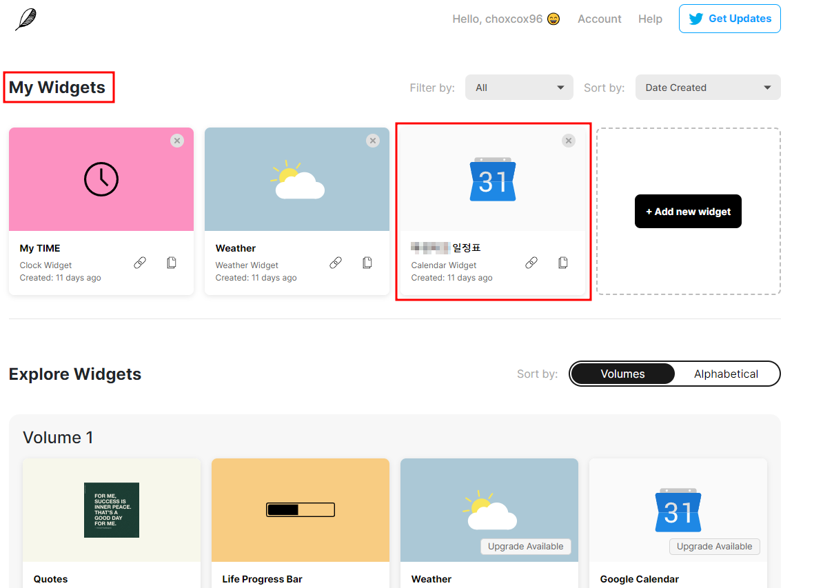 이것저것 해보다가 위젯을 추가할 수 있는 웹사이트를 찾았습니다.