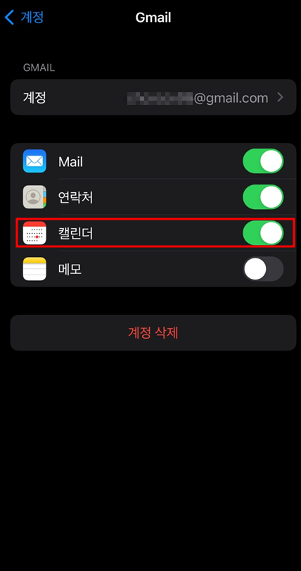설정 - 캘린더 - 계정 - Gmail - 캘린더 온