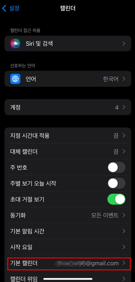 그리고 기본 캘린더를 Gmail캘린더로 바꿔주세요.