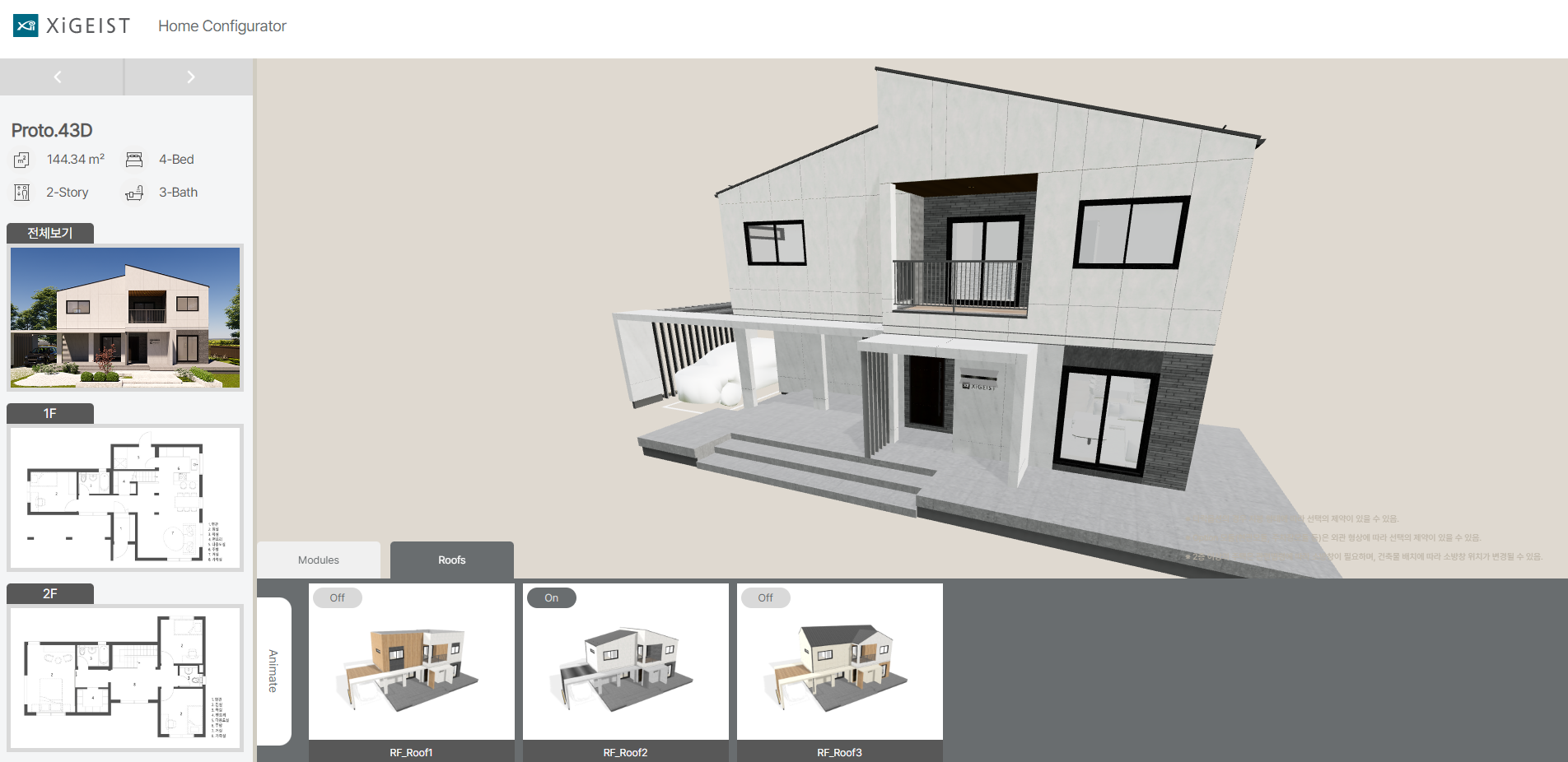 현재 웹사이트에 Home Configurator기능이 있는데, 본인이 원하는 평형대, 원하는 집 모델링을 만들어낼 수 있다.