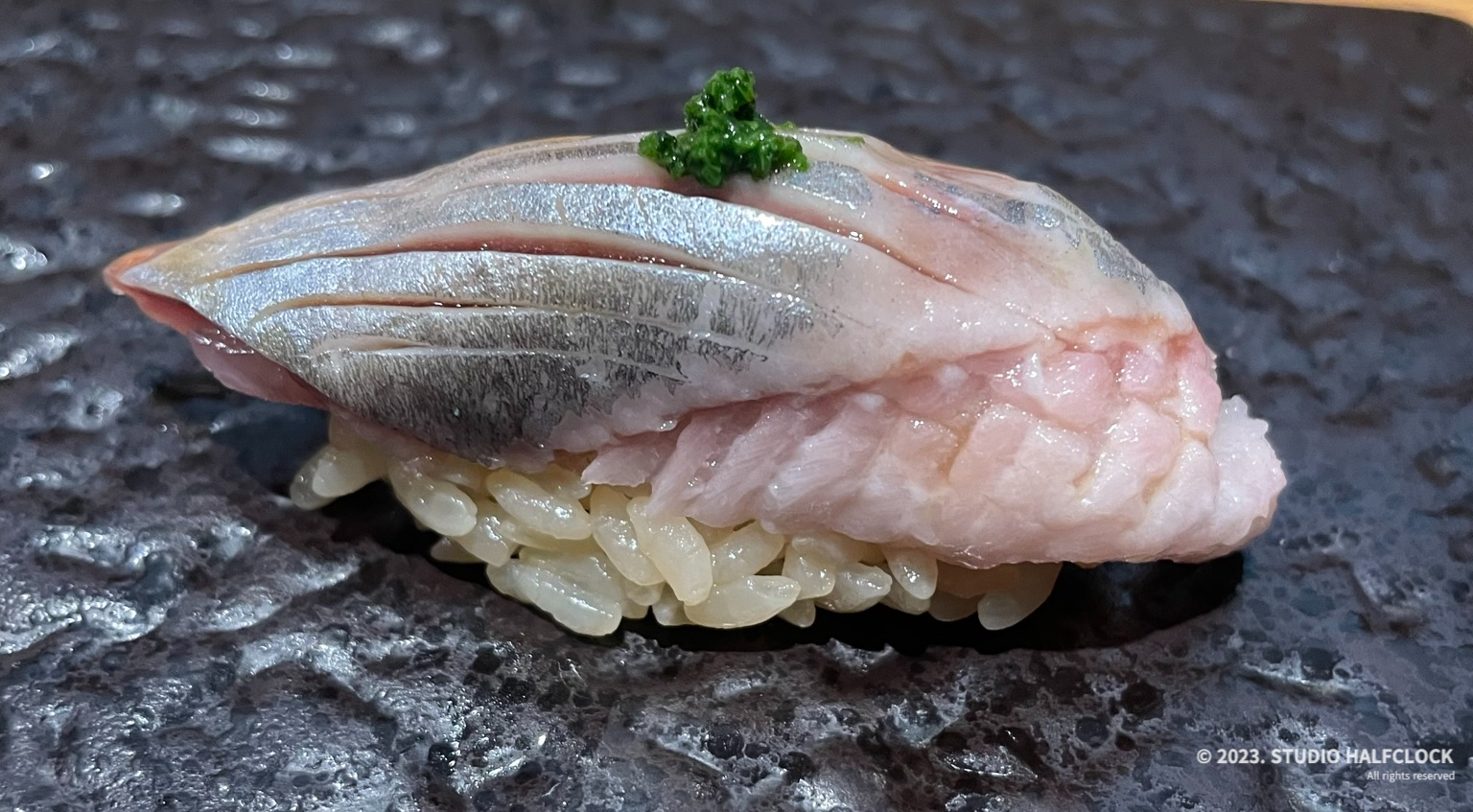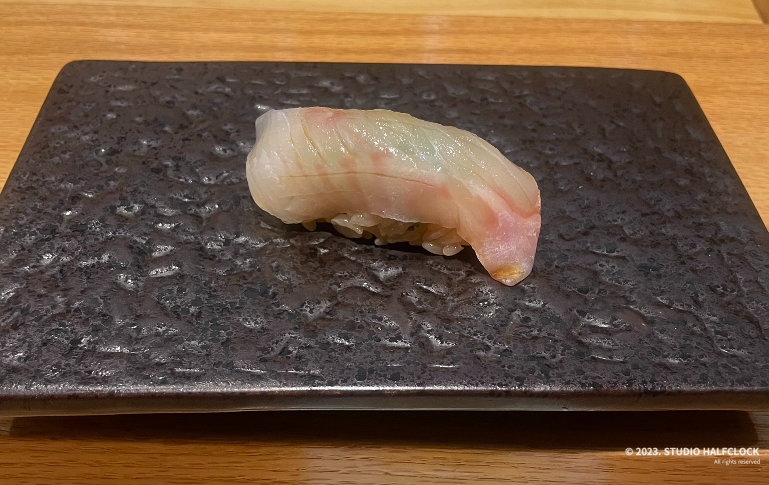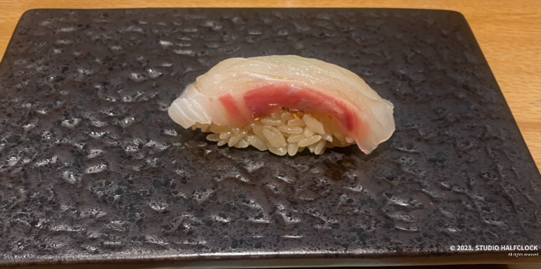 광어 - 참돔 - 잿방어+유자 - 삼치 - 참치속살 - 청어 - 참치 중뱃살 - 단새우