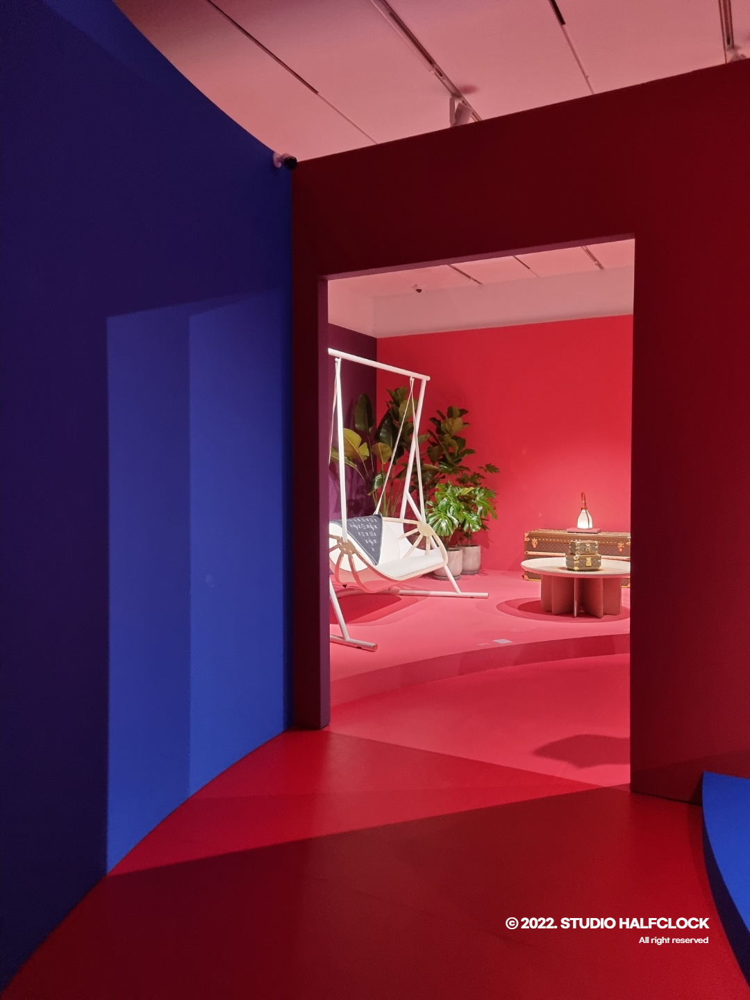 루이비통의 가구 전시는 굉장히 컬러풀했다. 가구들도 색상이 화려했지만 이 가구들이 전시되어 있는 공간은 조명과 색상으로 잘 어울리게 꾸며놓았다. 이 소파는 정말 특이했다. 푹신푹신한 조약돌 느낌이다. 사실 모든 가구가 예술 작품과 같아서 정말 즐겁게 봤다. 벽의 컬러별로 다른 느낌을 주기 때문에 컬러 따라서 구경하는 것도 재밌다.