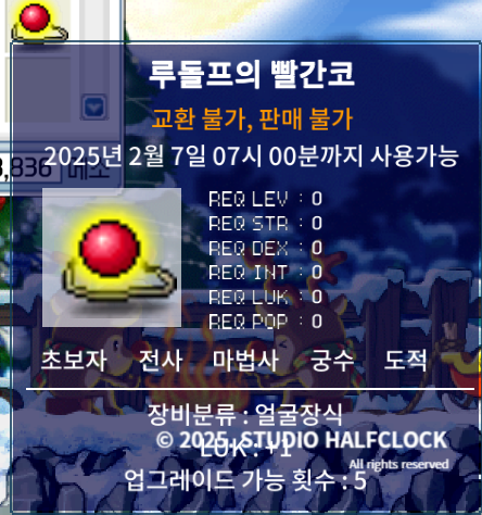 🎁보상: 루돌프의 빨간코 (옵션 랜덤)준비물: 토르의 뿔