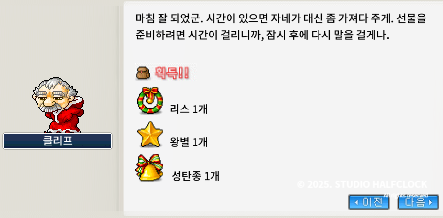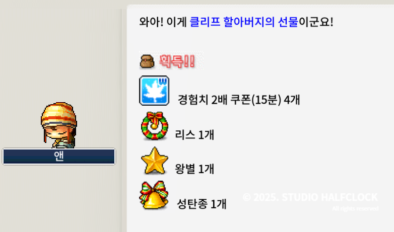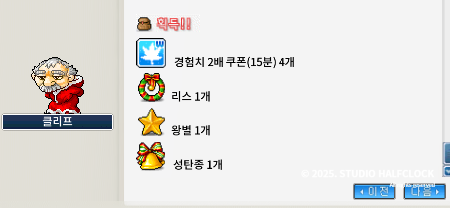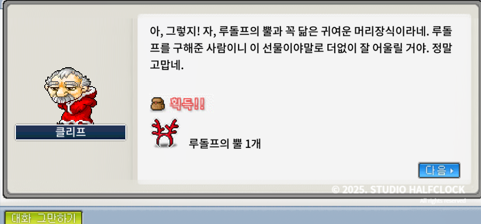 🎁보상: 루돌프의 뿔 (모든 능력치+4)