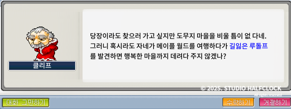 '길잃은 루돌프 찾기' 퀘스트를 받아주세요
