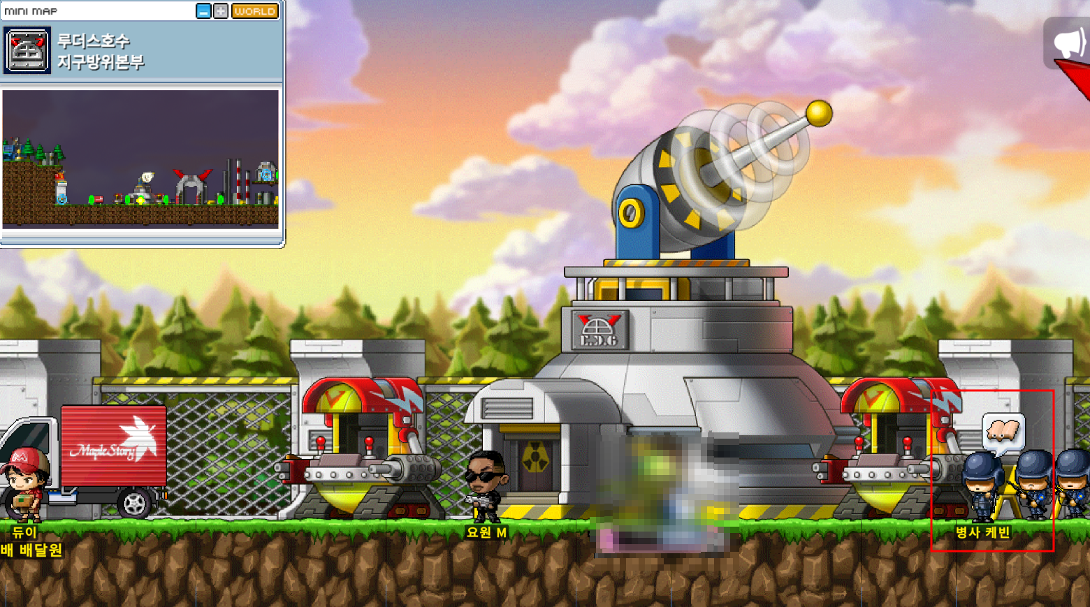 루니는 지구방위본부 자유시장쪽에 있어요.
