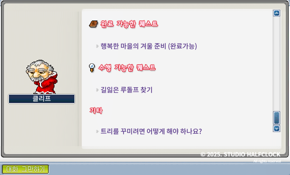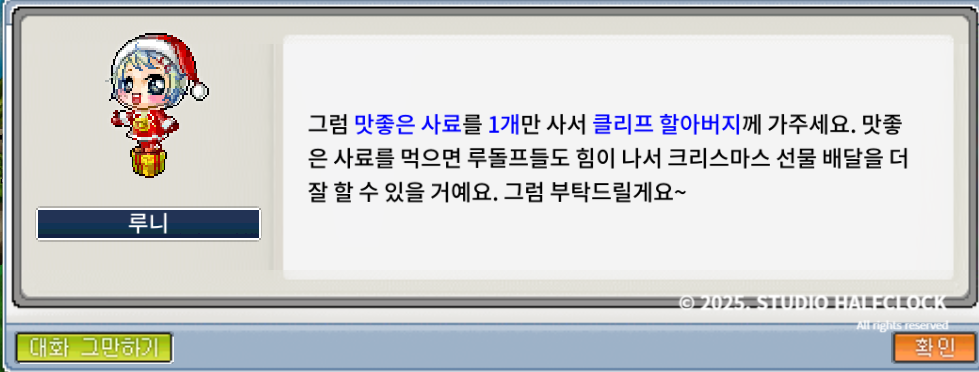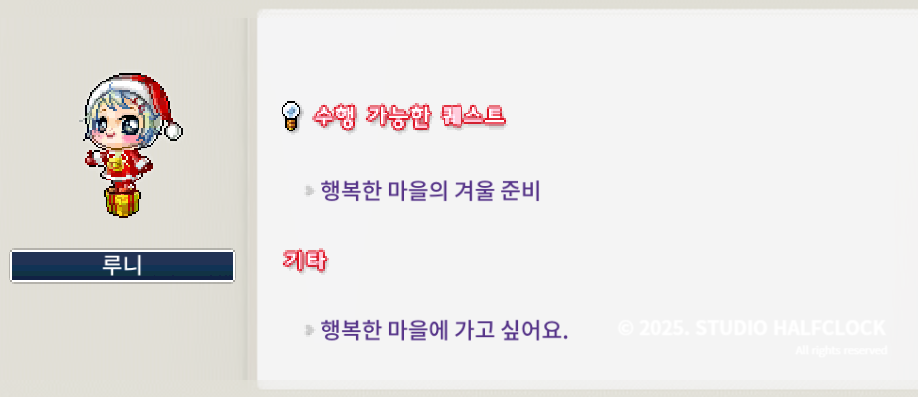 1. 행복한 마을의 겨울 준비 (4개) - npc 루니