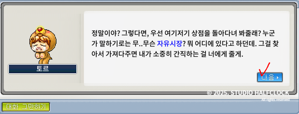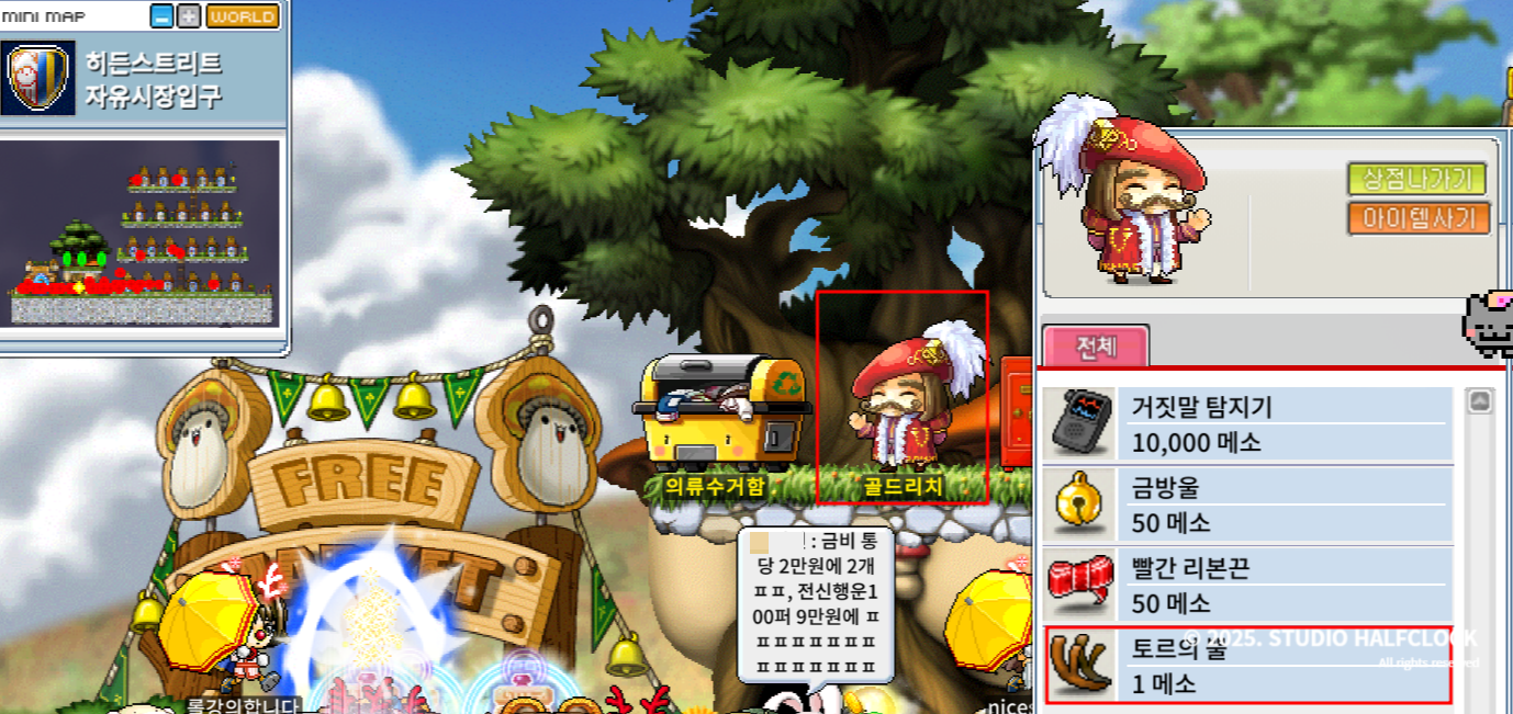 📍 자유시장에서 토르의 뿔 1메소 구매가능