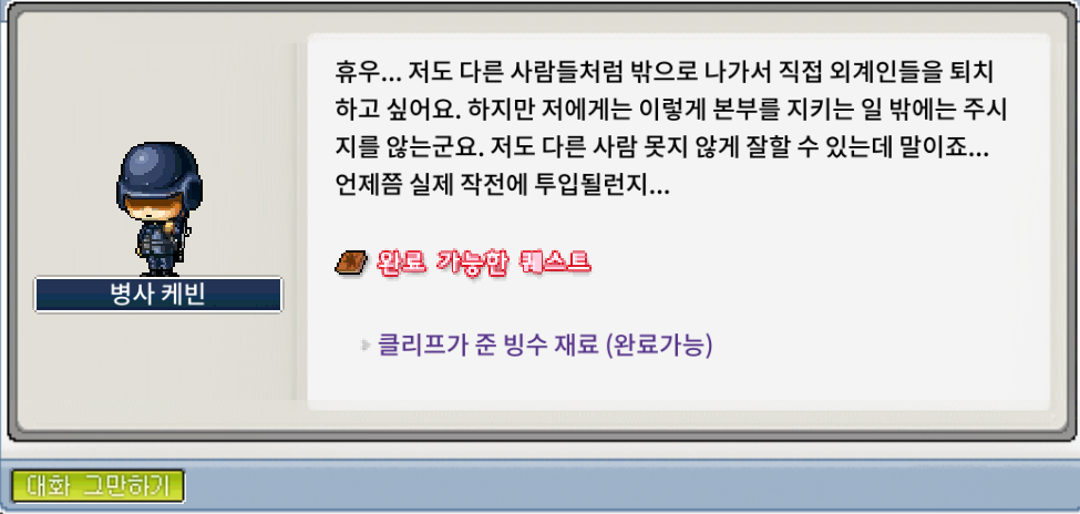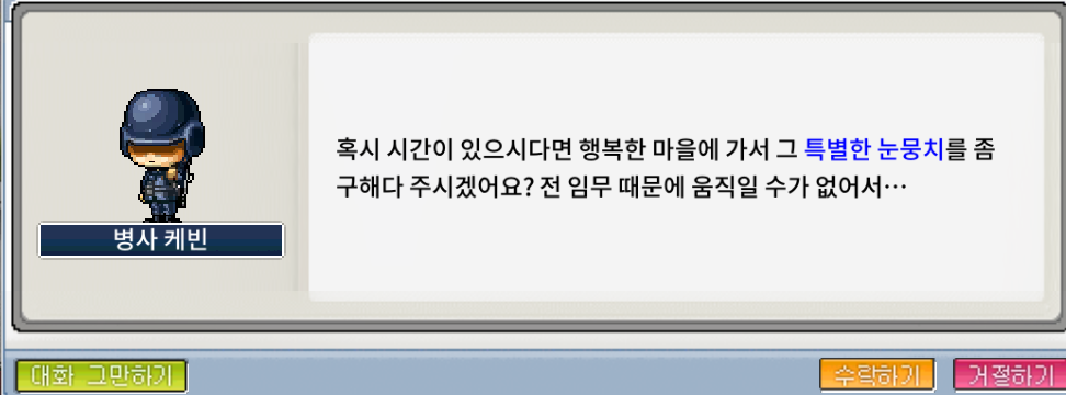 3. 행복한 마을의 맛있는 눈뭉치 (4개) - 지구방위본부 npc 케빈 (루디브리엄 - 지구방위본부)