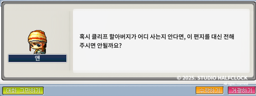 2. '앤의 편지' 퀘스트 (4개) - 헤네시스 npc 앤 (빅토리아 아일랜드-헤네시스 동쪽언덕)