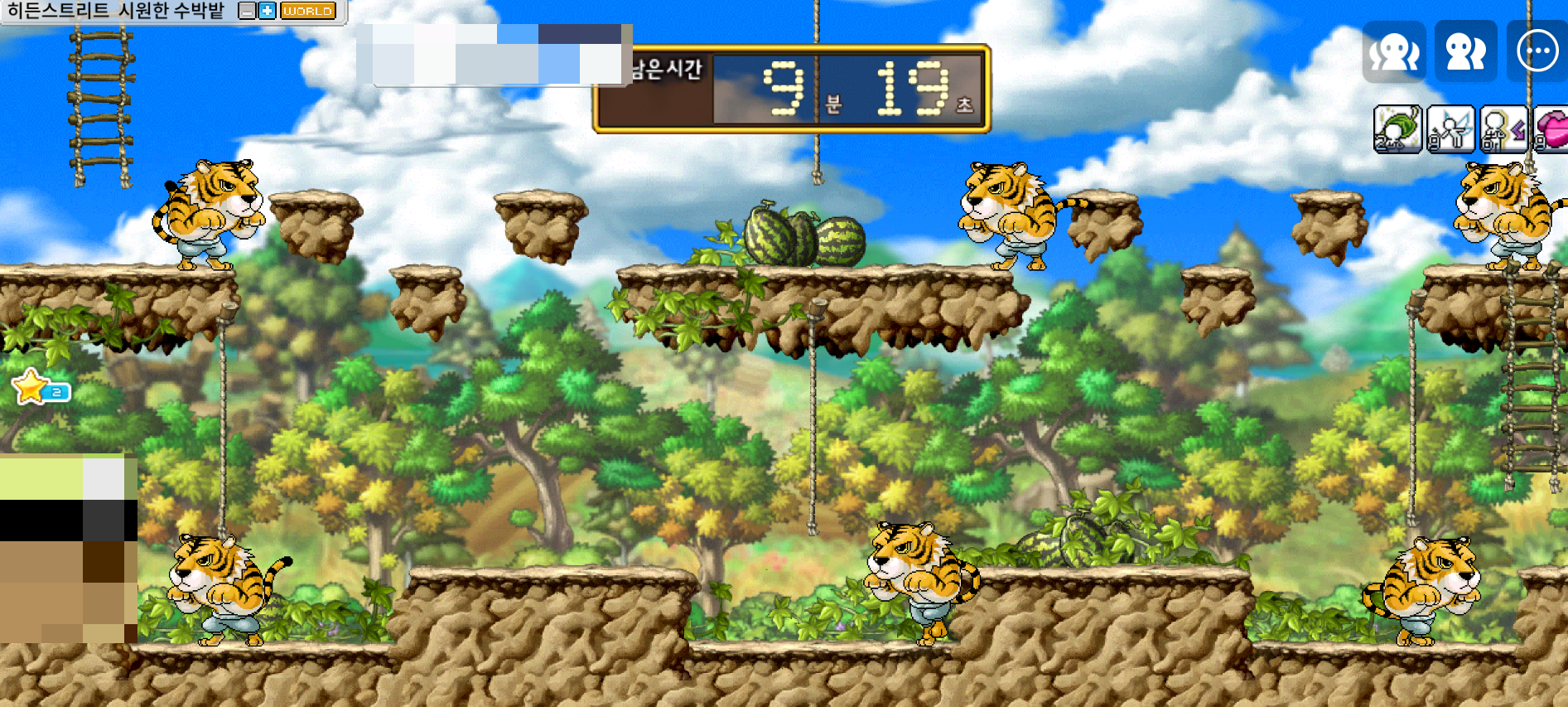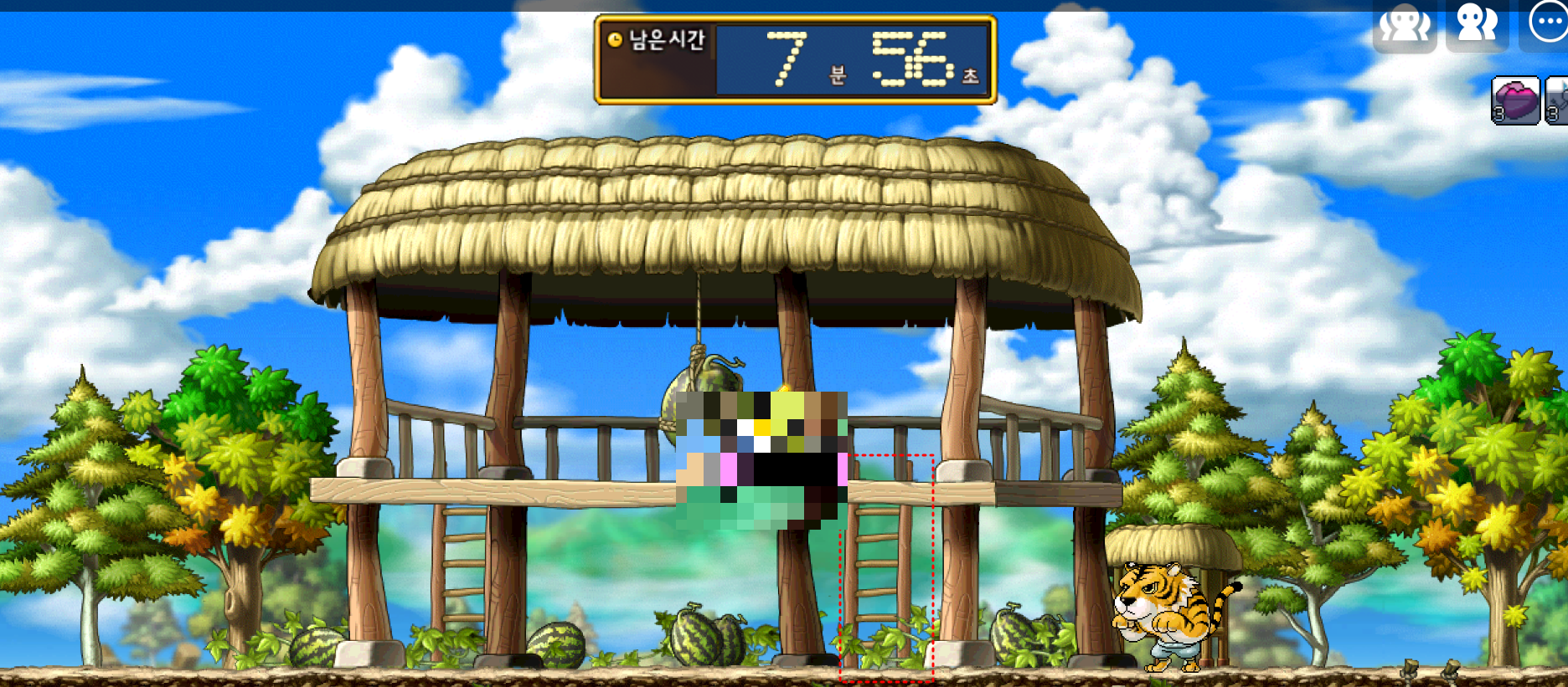 제일 위로 올라가서 사다리 타고 올라가면 수박이 하나 있어요