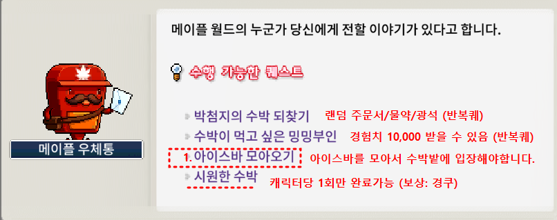 1. 아이스바 모아오기 퀘스트 (반복퀘)
