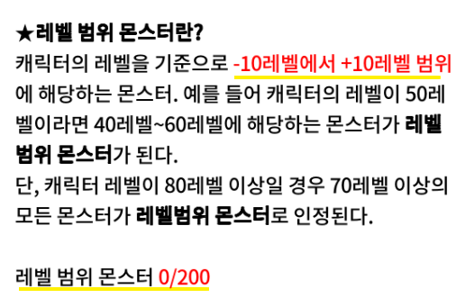 레벨범위 몬스터 200마리 잡으면 됩니다.