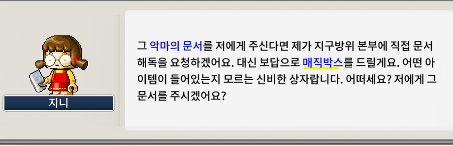 (빅토리아는 천지한테 가서 죽은자의 부적 50개 줘야 박스줌 - 그 후 커닝시티의 몽땅따한테 상자가져가기)