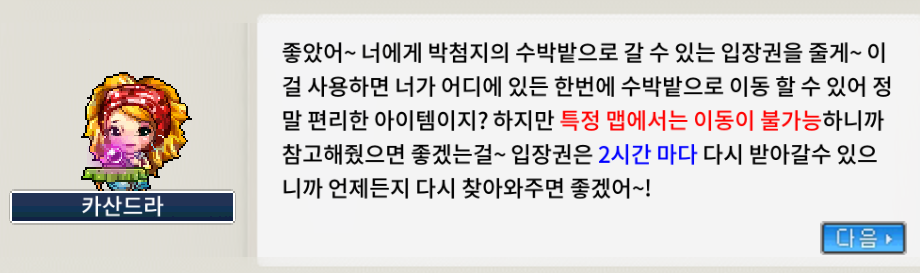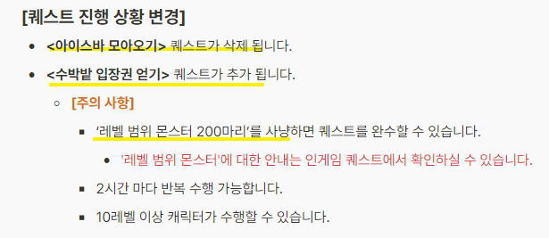 *수박밭 입장권 얻기 퀘스트로 바꼈습니다