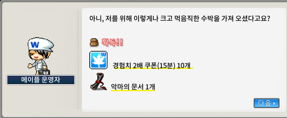 - 박첨지의 수박 되찾기 (랜덤 주문서/물약/광석 교환)