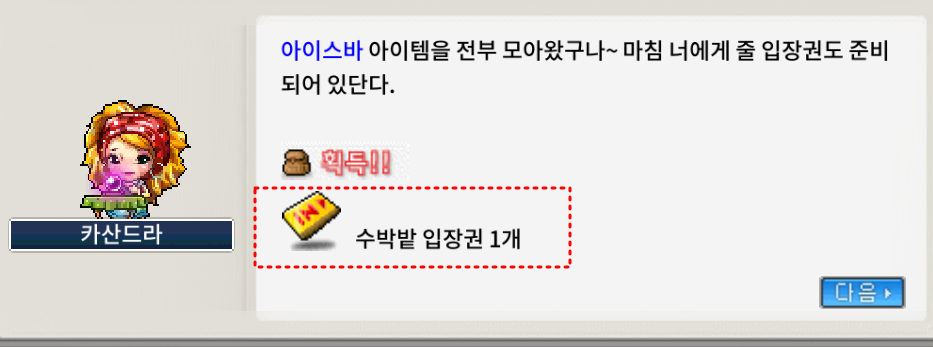 일단 아이스바 모아오기 퀘스트로 수박밭 입장권을 받아야 합니다.