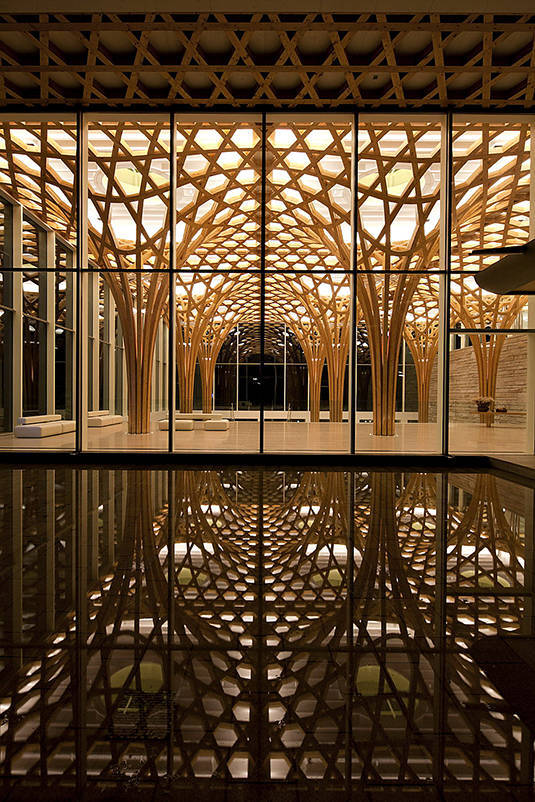 그랜드 홀의 목재 구조 형태는 클럽하우스와 조화를 이루며, 제작을 줄이기 위해 2차원 벤딩만을 사용하여 구성되었다. 각 기둥에는 나무를 지탱하는 플랜터와 땅 위에 반사하는 연못이 있다. 배움터에는 기복이 심한 지형을 이어주고 자연 속에서 상징적으로 모습을 드러내는 다리 같은 형태가 있다. 정면에도 표현된 대형 스판 트러스는 양쪽 끝에 있는 두 개의 석면 코어로 지지되어 큰 홀이나 회의실과 같은 기둥이 없는 기능에 대한 공간 요건에 대응했다.