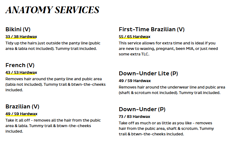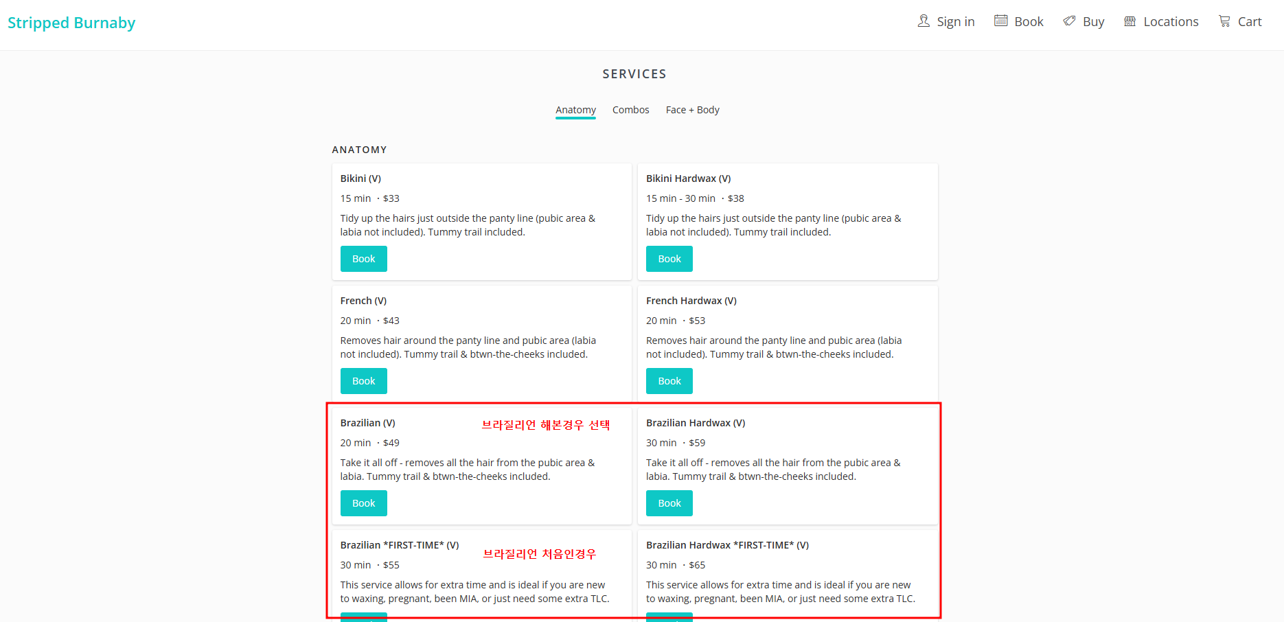 *예약할 때 유의할 점, 브라질리언인지 확인! 비키니는 비키니 라인 따라서 왁싱해 줍니다.