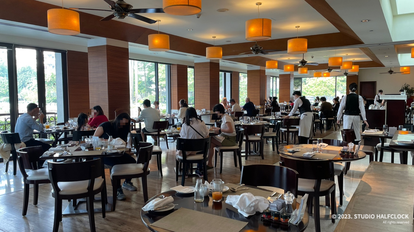 조식은 1층에 위치해 있습니다. 조식 먹을 때 호수뷰 쪽에 앉으면 뷰를 보면서 먹을 수 있어요. 오전 6시부터 10:30까지 운영해서 원하는 시간을 골라서 갈 수 있었습니다. 저는 8시쯤 먹으러 갔는데 사람이 꽤 있었어요. 한국음식으로는 미역국, 김치 정도 볼 수 있었고 그 외에 중국음식, 일본음식, 인도음식 등 다양한 국적의 음식들이 있어서 좋았습니다. 저희 어머니는 바로 미역국부터 드심.. 쌀국수 진짜 맛있어요 1일 1 쌀국수 먹어줘야 합니다.