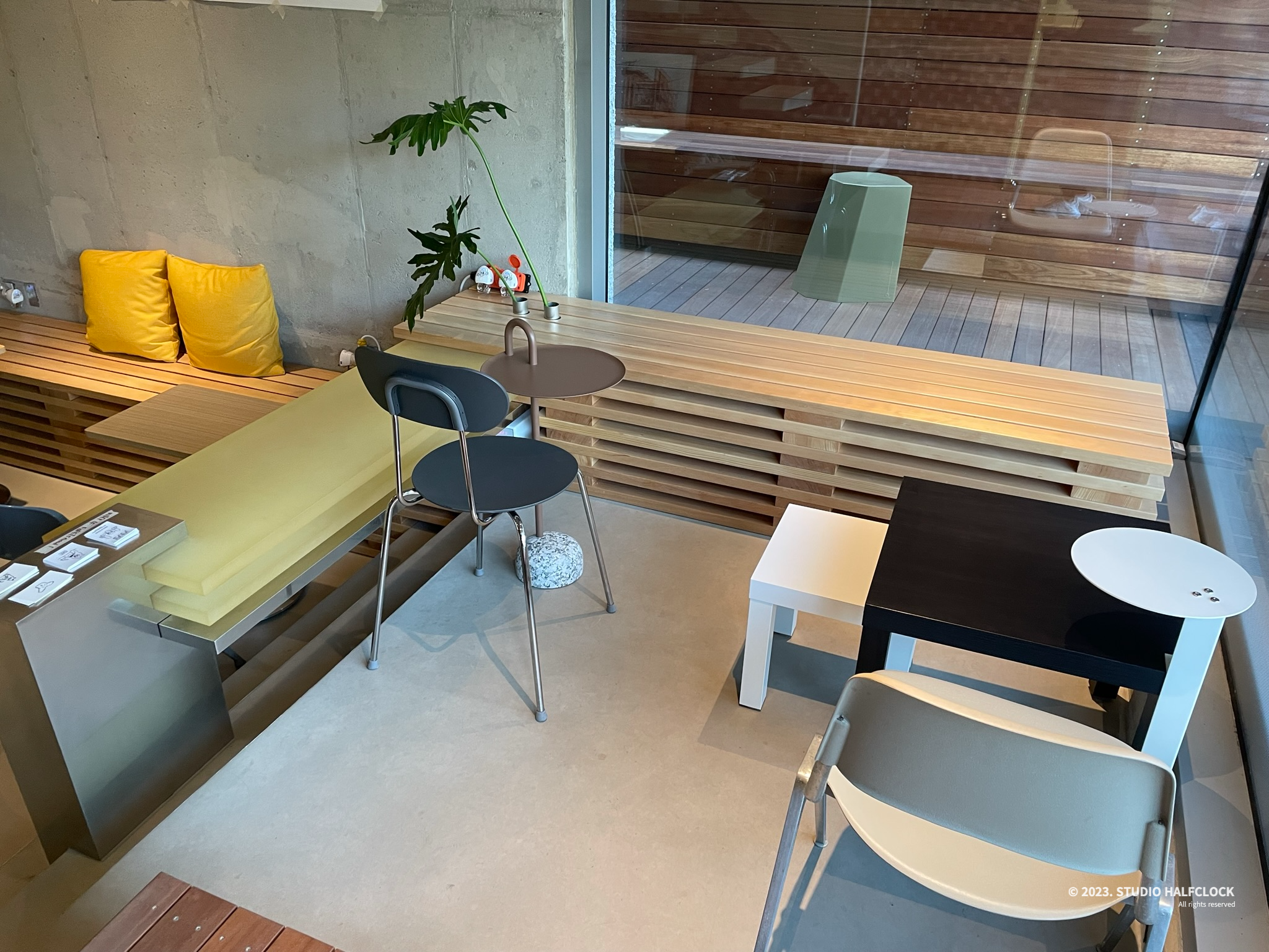 건물은 삼각형 형태를 띄는데 뾰족한 부분을 잘 활용한 인테리어가 예뻤다.