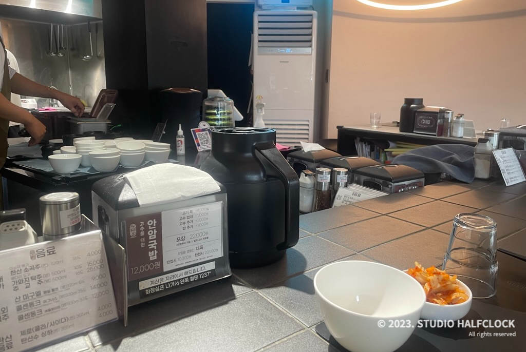 국밥은 한국의 국민음식이죠. 주로 술과함께 먹는경우가 많은데요. 여기도 다양한 종류의 술을 팝니다. 총 3종류의 주류를 팝니다. 국내도가에는 한산 소곡주, 가와지 탁주, 주교주가 있습니다. 한산 소곡주는 잔으로 주시던데 저는 안마셔봐서 잘 모르겠네요.