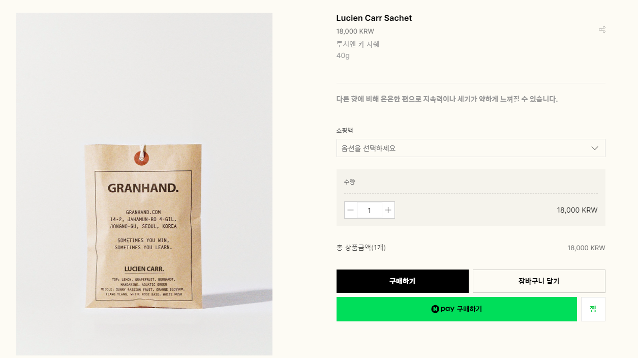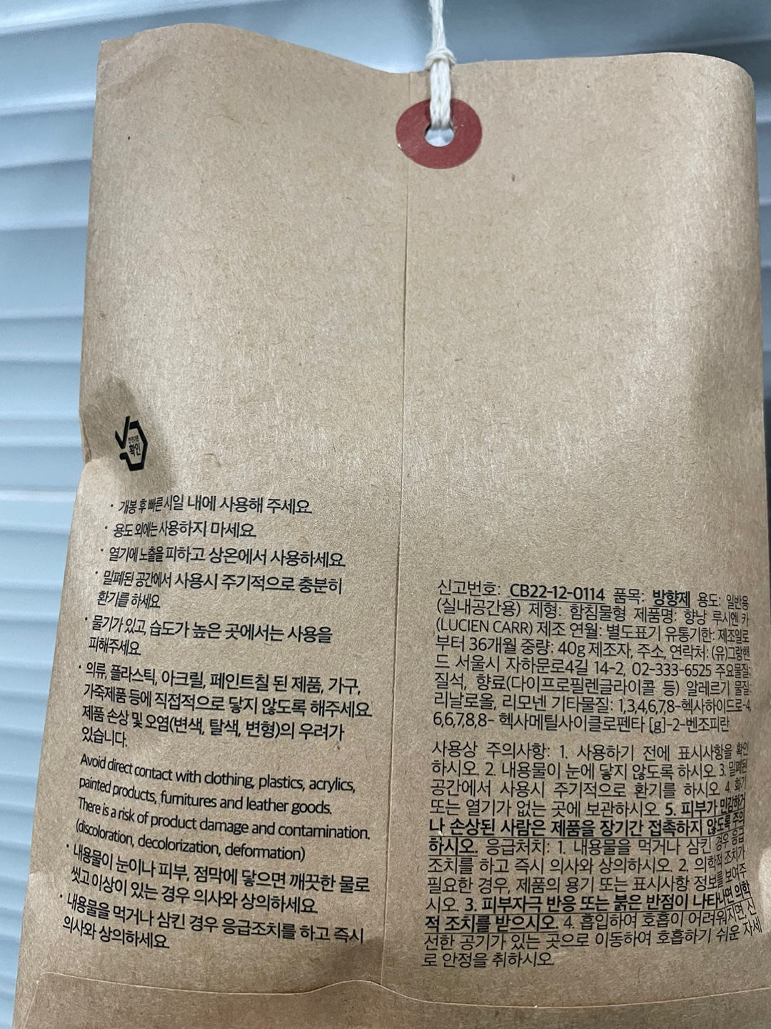 사쉐(sachet)는 '향주머니'라는 뜻으로(향낭), 은은하게 향이 나오는 방향제라고 생각하시면 됩니다. 액체형 디퓨저와 달리 떨어질 위험이 없고 간편하게 걸어놓을 수 있어서 최근에 많이 선호하는데요. 특히 좁은 공간인 옷장, 화장실, 자동차 등 다양한 장소에 쓰일 수 있습니다. 그랑핸드의 사쉐는 친구 추천을 받아서 써봤는데 굉장히 만족합니다!