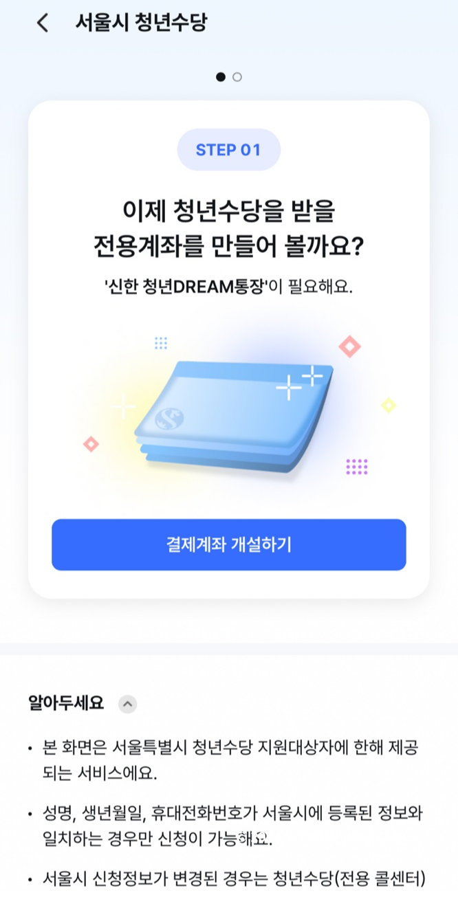 2. 청년수당 전용 계좌 개설 및 카드발급