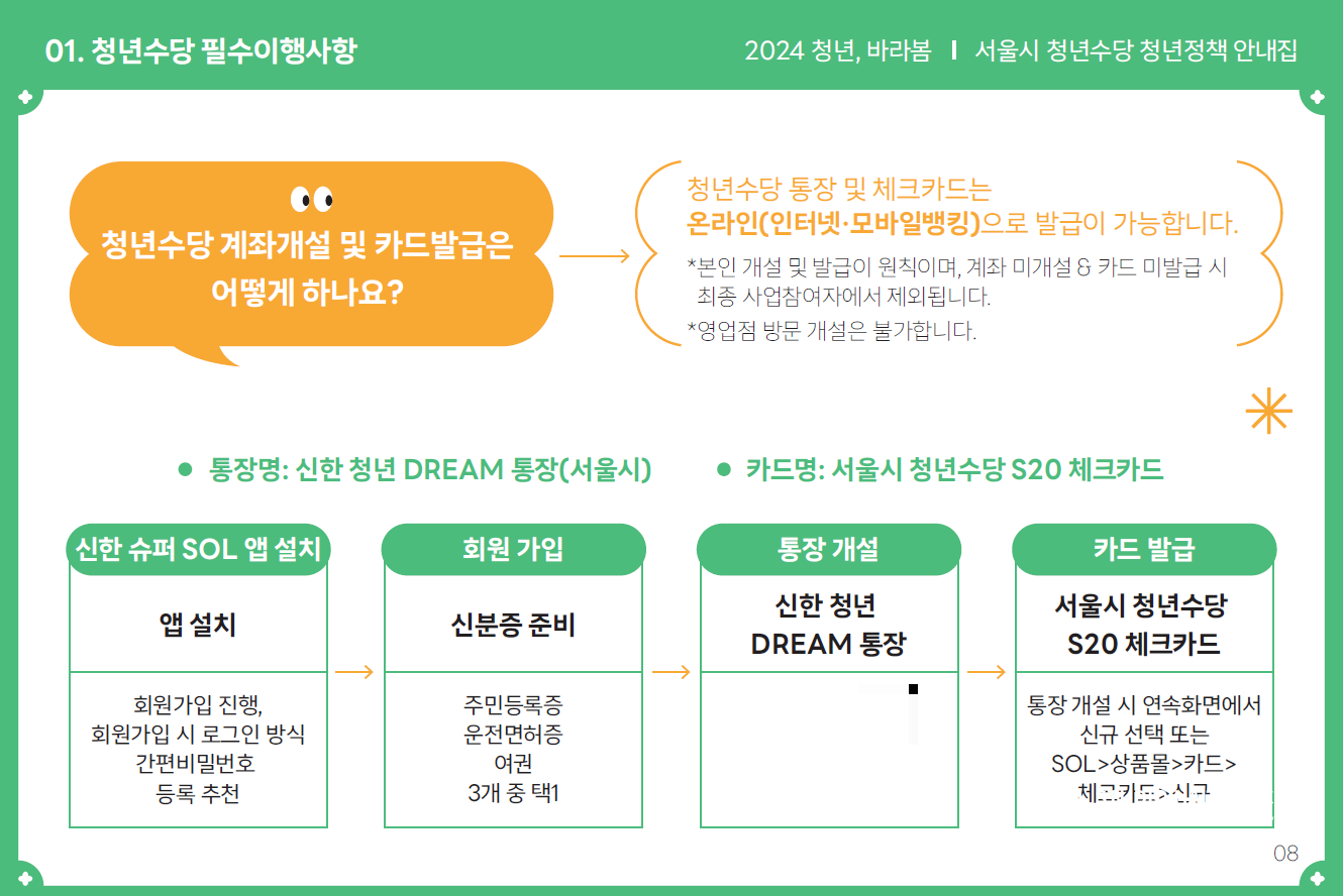 2. 청년수당 전용 계좌 개설 및 체크카드 발급