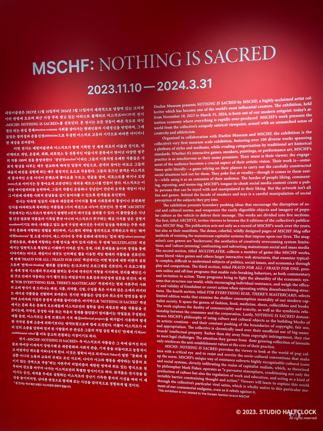 가끔 국내 패션브랜드인 미스치프와 헷갈리는 경우가 있는데요. 브랜드 전시 아닙니다! 미스치프라는 뉴욕기반 아티스트 집단의 전시입니다.