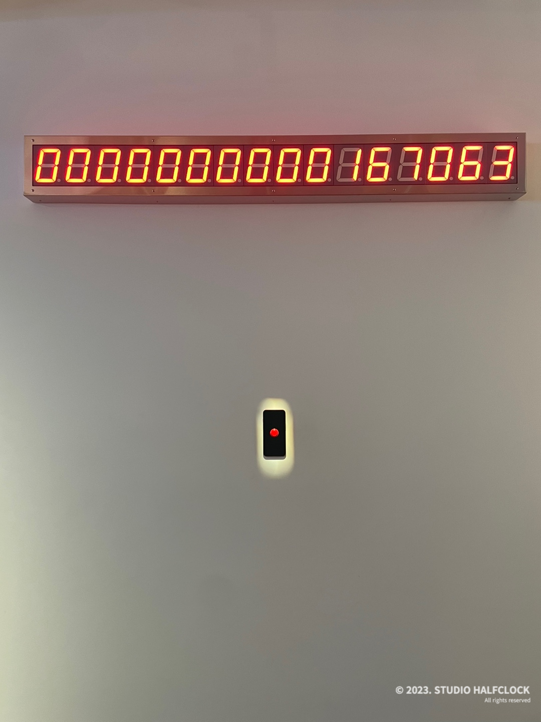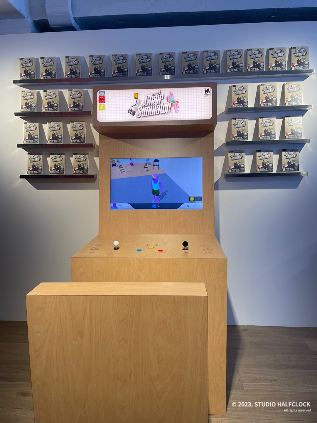 저 빨간색 버튼은 누르고 싶게 생겨서 누르면 숫자가 올라갑니다. 전시장에서 관람객들의 흔적을 남길 수 있어서 재밌었습니다. 게임을 직접 플레이할 수 있는 박스로 앉아서 게임 캐릭터를 움직일 수 있어요. 이 외에도 관람객들이 참여하는 전시가 많았습니다.