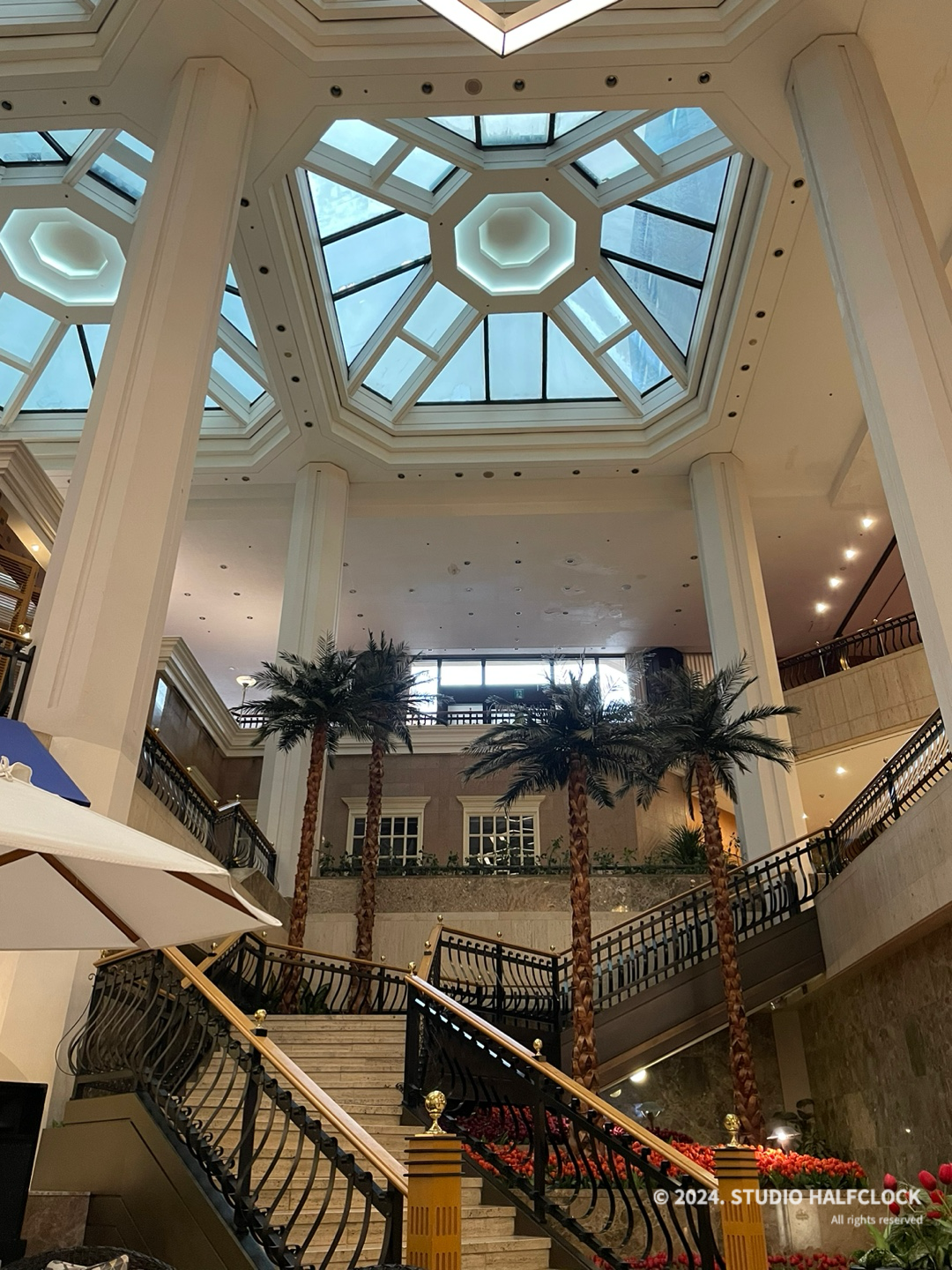 메인 호텔 건물 로비는 예쁨. 층고가 엄청 높고 기둥이 쭉쭉 뻗어있어서 마치 외국에 온듯한 이국적인 느낌을 줍니다.