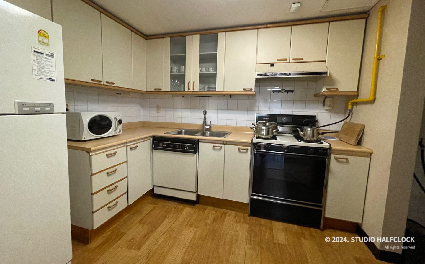 이건 키친이 아니라 주방임. 주방보고 한번 더 충격! 일단 저 가스레인지와 냉장고를 진짜 거의 처음 보는 듯..? 그리고 물 끓이는 게 없어서 주전자 써야 해요. 완전 지브리 할머니집이잖아? 아무튼 냉장고도 진짜 난생 첨 보는 거라 신기했음!