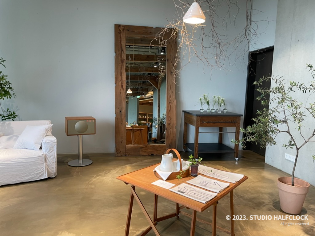 곳곳에 소파와 거울, 테이블 등 오브제들로 꾸며놓았다.
