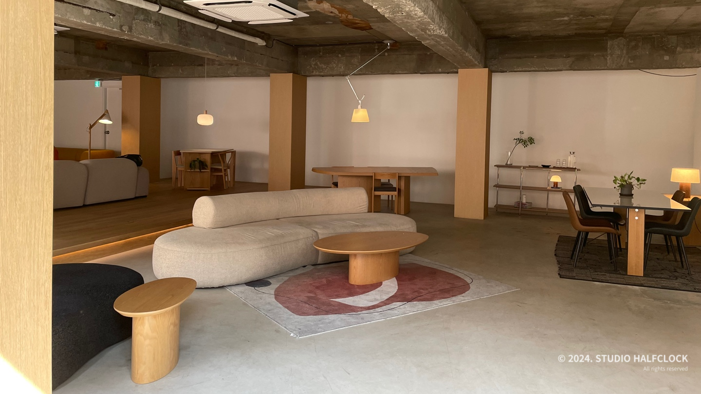 가구전시장 같은 분위기, 거대한 소파와 러그, 귀여운 탁자, 조명까지 처음엔 진짜 가구전시장인가 싶었다. 각 테이블과 의자마다 조명이 다 달라서 구경하는 재미가 있었다.