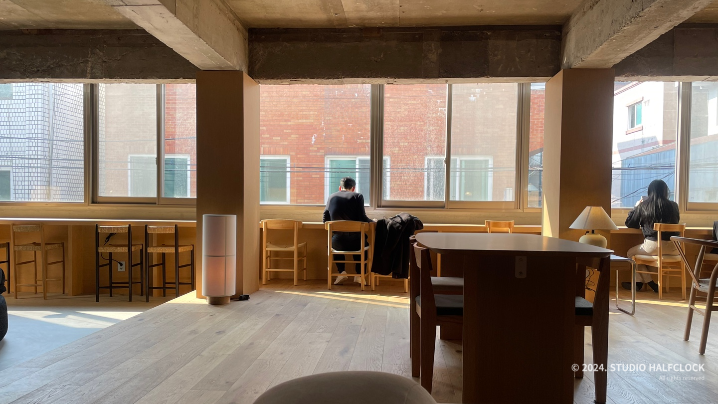 창이 꽤 커서 답답한 느낌 없이 따뜻한 햇빛을 받으며 커피 한잔 할 수 있어요.