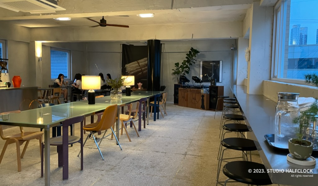 카페가 어디에 있는지 찾기가 힘들었는데, 꽤 허름한 골목 건물 3층에 있어서 올라가면서 맞나? 생각하며 올라갔다. 3층에 도착하면 정말 전혀 다른 공간이 나온다.