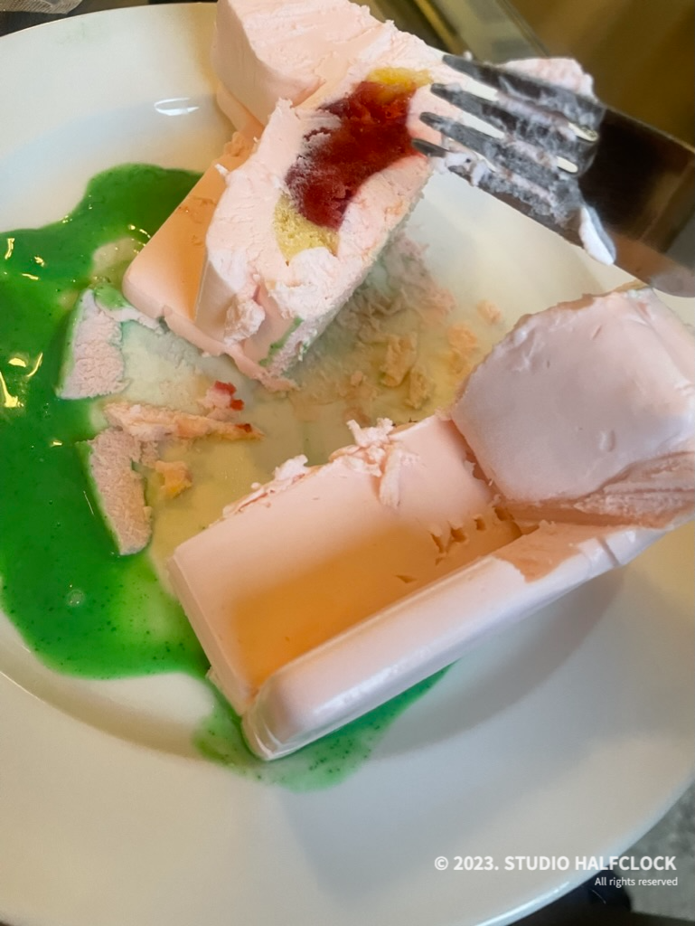 딸기 아이스크림 맛인데 보기에 너무 귀여워서 자르는데 아쉬웠음..