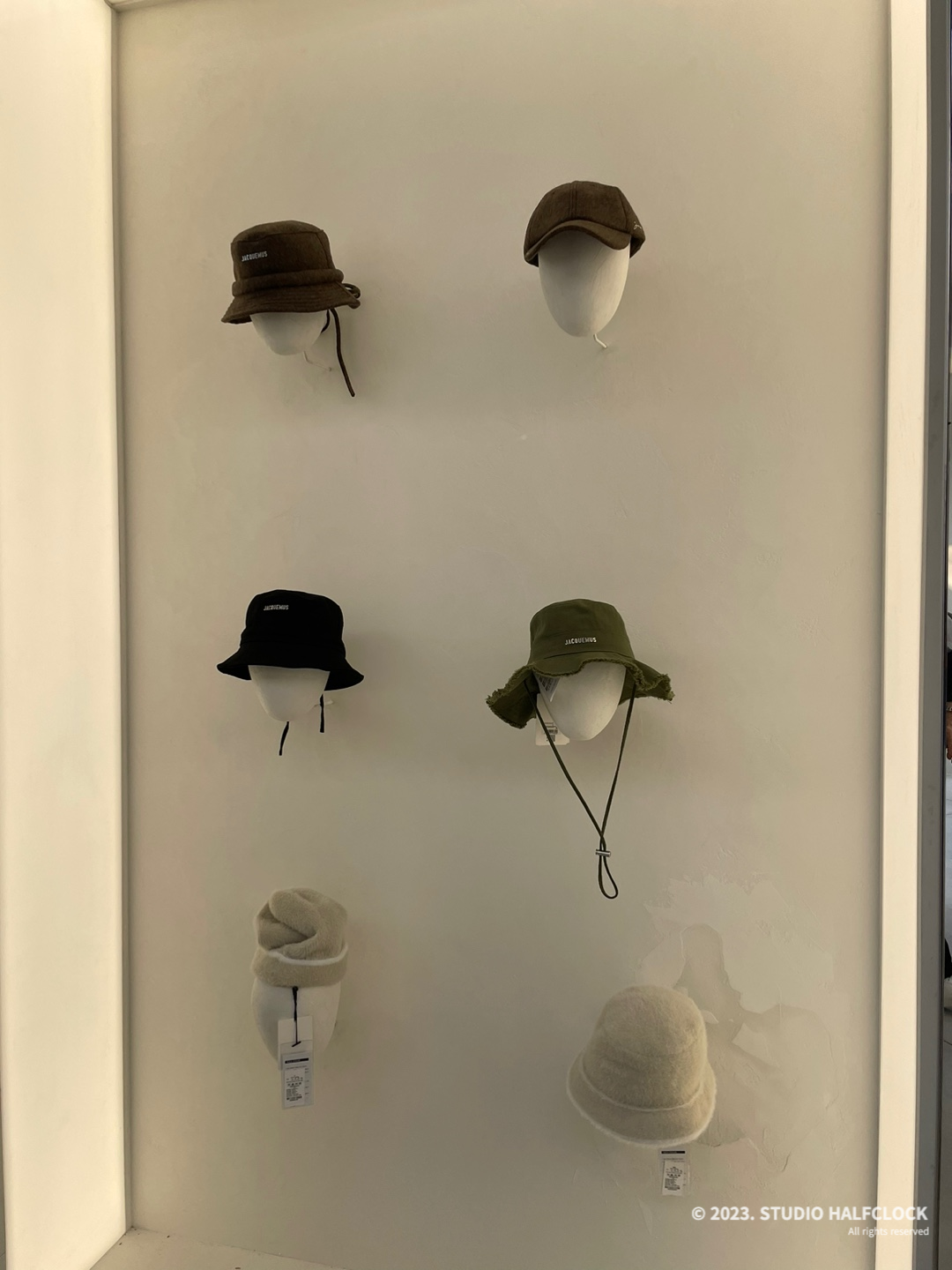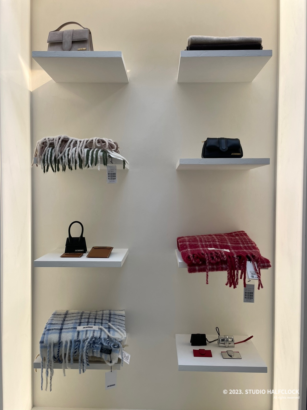 목도리와 카드지갑 작은 가방 악세서리 등 다양한 액세서리들을 볼 수 있었습니다. 자크뮈스의 모자도 볼 수 있었는데 모자 가격대는25~30만 원 정도였어요. 자크뮈스 카디건이나 옷도 보고 싶었는데 옷은 없었어요.. 아쉽..